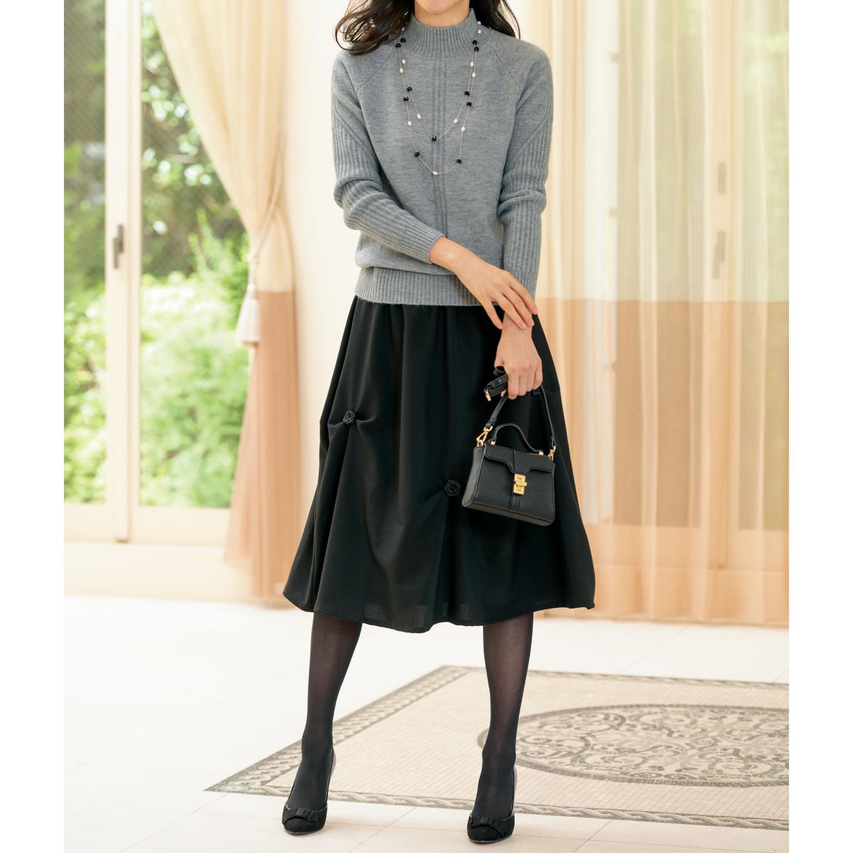 ふんわり柔らかで心地良く体型を拾いにくい厚みのニット。ーこだわりPOINTー気になる首やデコルテをエレガントに隠し、着映えもすっきり見えも叶えます。ーデザインー袖のリブ使いや切り替えを巧みに効かせたこだわりのデザイン