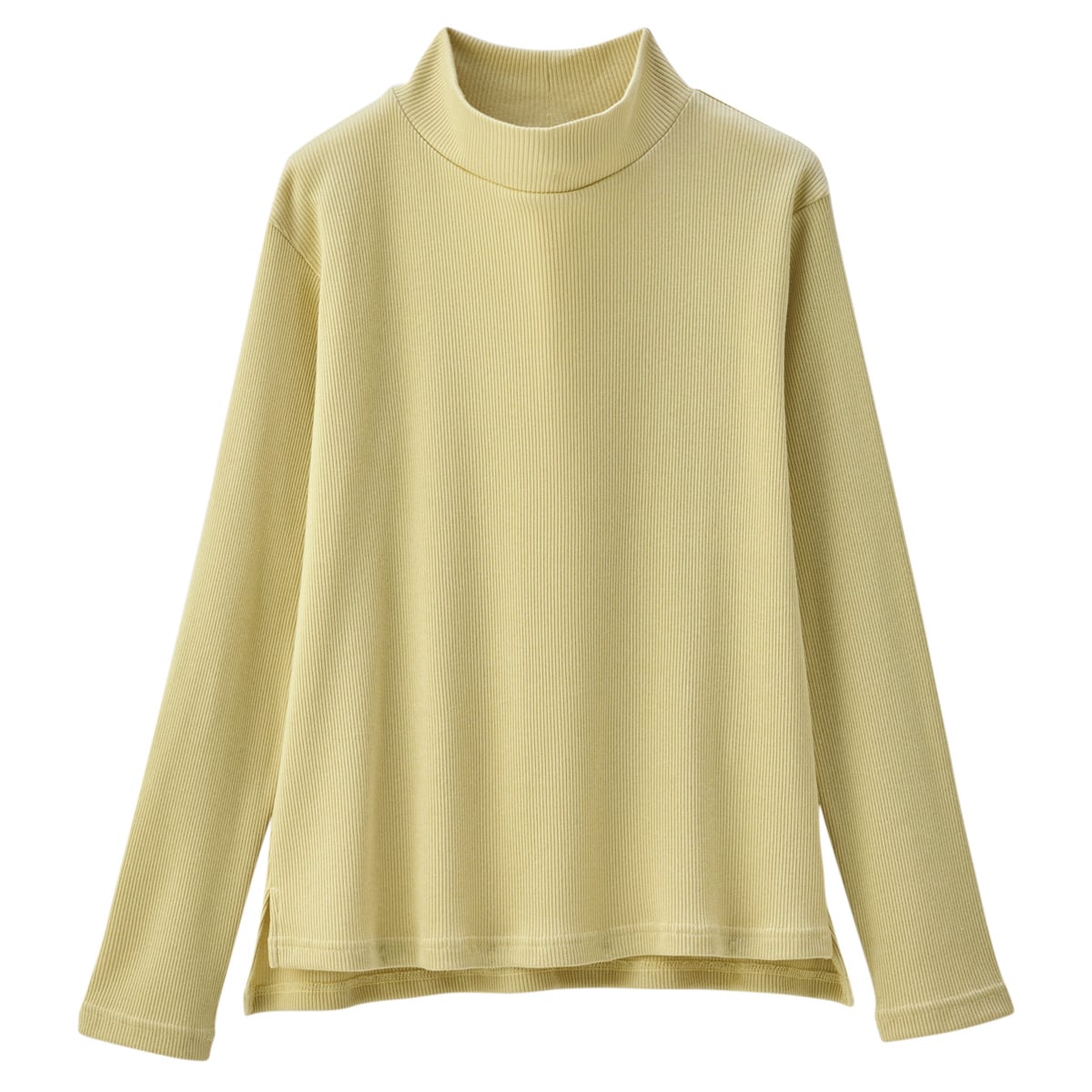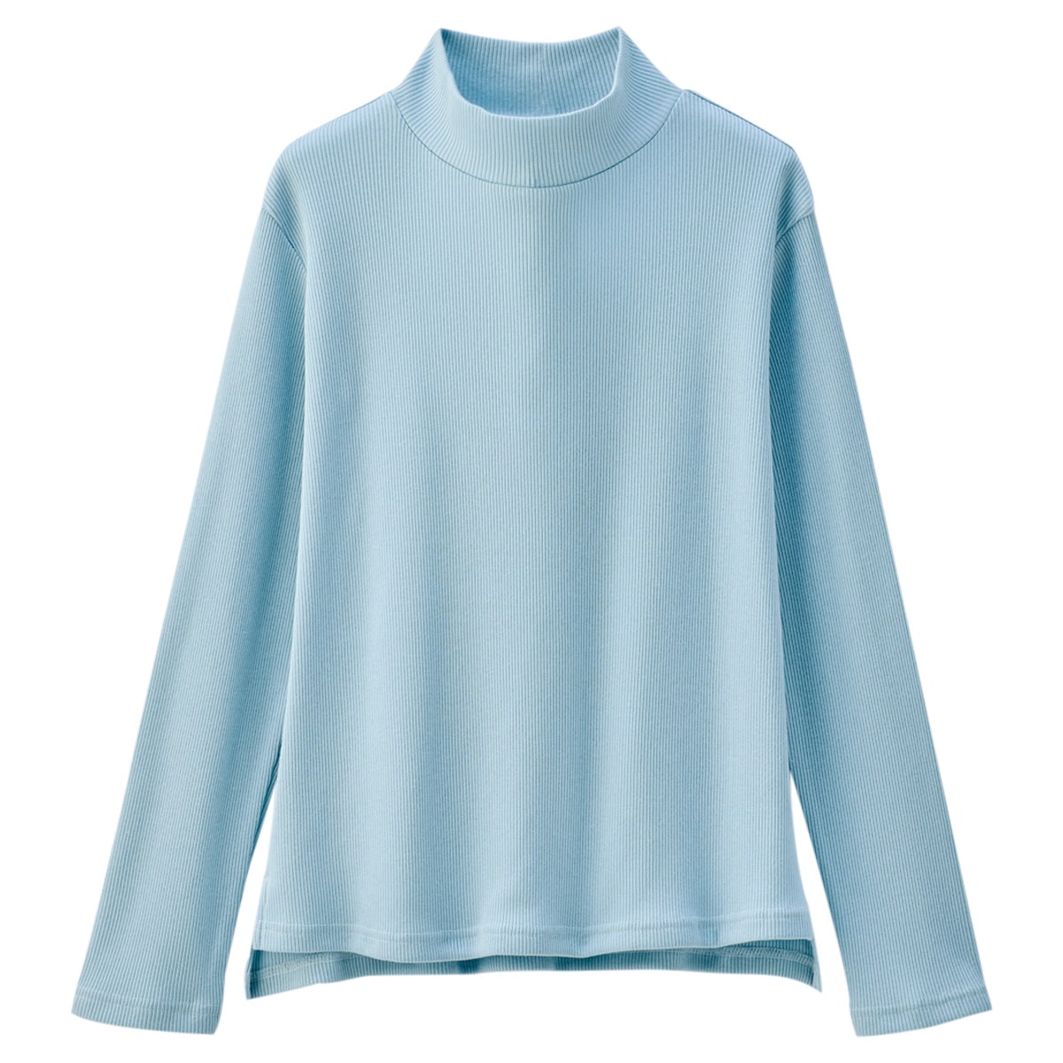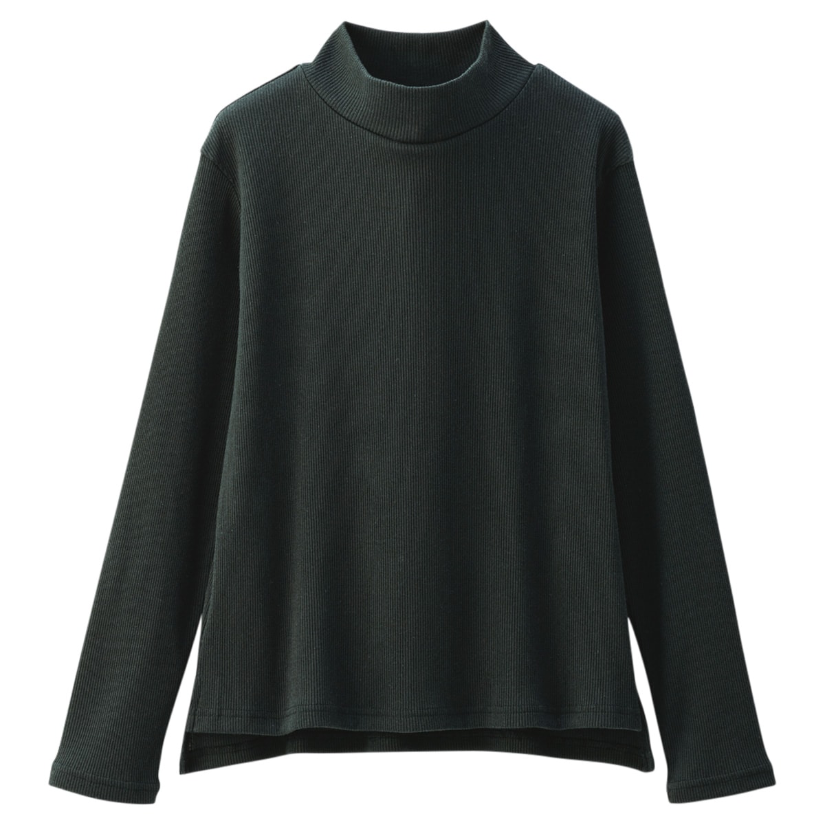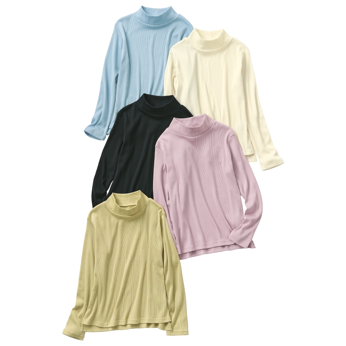 シルキーなツヤ感で品よくきれい魅せ。ブラックパンツ合わせでライトフォーマルにも。ーデザインー細リブ仕立てでニット見えするカットソープルオーバー。ハイネックデザインが気になる首元をカバー。程よいフィットシルエットで1枚でもインナーとしてもすっきり見えます。ー素材特徴ーしなやかで伸縮性がある東レのシルックR素材は、上品な光沢感が魅力。