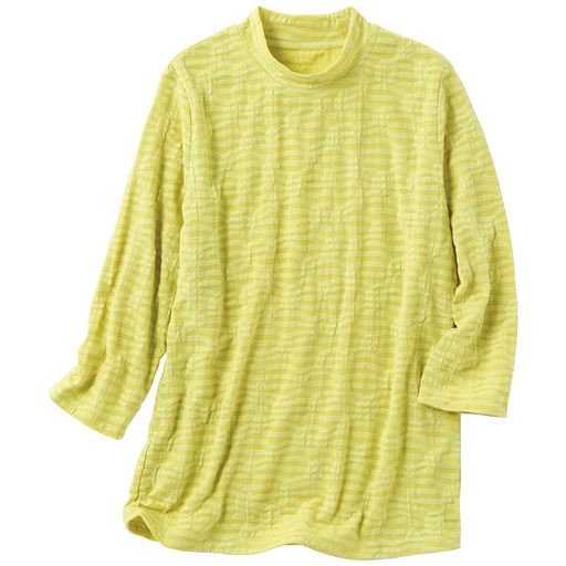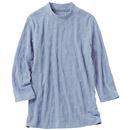 プチハイネック&7分袖が 気になるところをカバー!透かし編みと立体的なジャカード柄で、1枚で着映えするプルオーバー。ーデザインープチハイネックと7分袖ですっきり感がアップ。ー素材特性ー接触冷感性を備えた素材でサラリと爽やかな着心地。ヨコストレッチで動きやすく、着脱しやすい。【吸水速乾】【接触冷感】