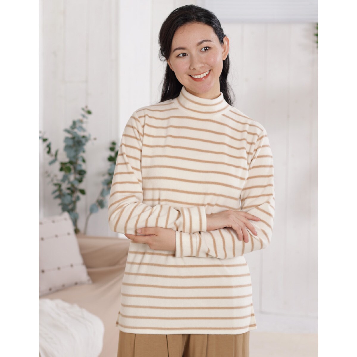 ボーダー軽くて伸びるフリースで重ね着しても肌なじみが良くラクな着心地