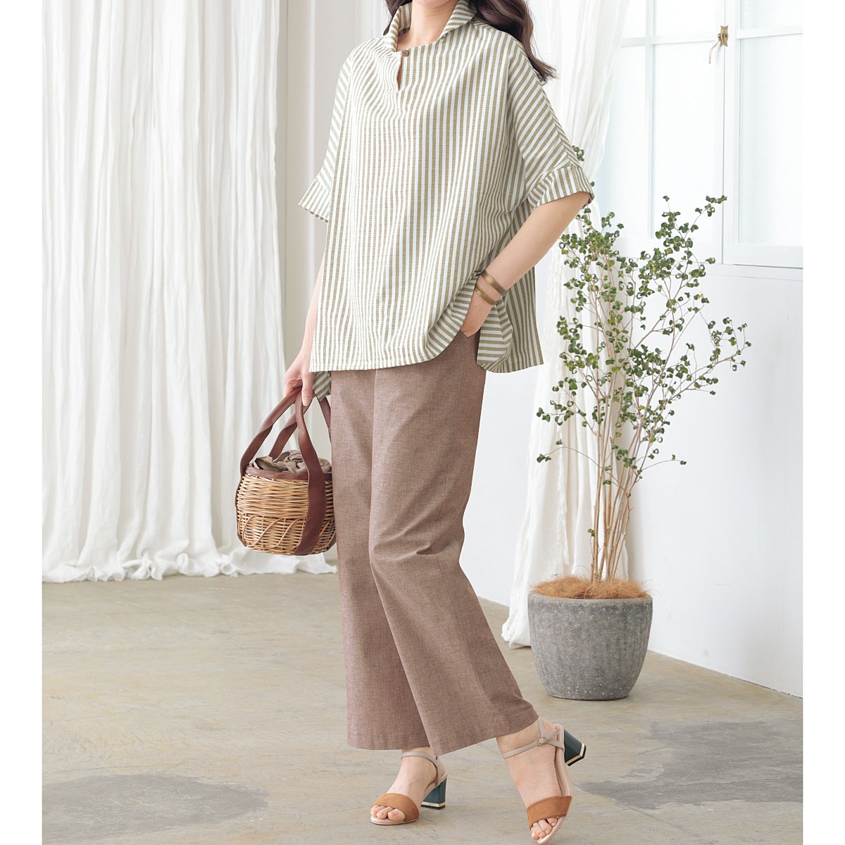 【日本製】播州織 杢調セミワイドパンツ