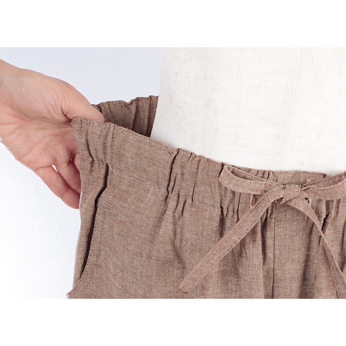 兵庫県の北播磨で生産される先染織物「播州織」は、約220年の伝統があります。先染の杢調の色合いで表情豊かに。ー素材特性ー洗っていくほどになじむ、ナチュラルな風合いの綿100%素材。ーデザインーウエスト総ゴム仕様でらくらく。
