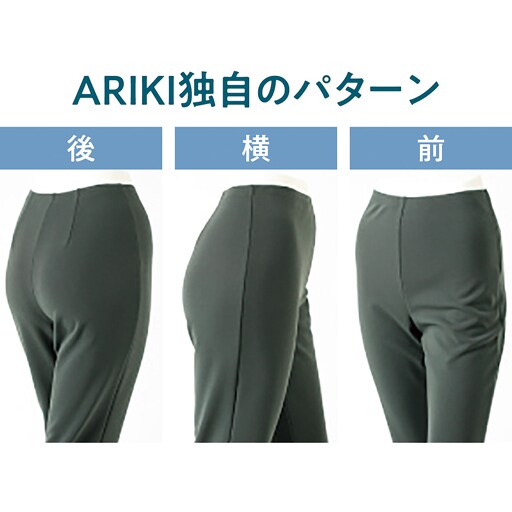 【ラク&キレイの秘密】1.ARIKI独自のパターン後ろ身より前身を多くとることにより、ポッコリお腹をカバーし、サイドラインもキレイ。素材が伸縮することでウエストゴムのしわができづらく、スッキリとしたウエスト周りに。ウエストには平ゴムを採用。着けていることを忘れそうな程、優しくしっかりとウエストをホールド。2.うっかり背中が・・・なんて心配無用深めの股上でしゃがんでも背中がでにくく、おなかもすっきり収まり安心して着用できます。3.全方向ストレッチでストレスゼロしっかり伸びるのにちゃんと元に戻るストレッチ素材。階段やしゃがんだりする動作もラク。ー素材特性ー三菱ケミカル「ボナンザ®」空気を含んだような独特の風合いが特徴の上質な素材。~ARIKI~機能性とデザイン性を兼ね備え、「楽でキレイ」を叶えるARIKIの純日本製パンツ。素材も含め、全ての工程を国内で行い、丁寧なものづくりが人気のブランド。【UVカット率約99%】【接触冷感】【吸水速乾】【360℃ストレッチ】【選べる股下丈】65cm・70cm■ポリエステル96%ポリウレタン4%●ウエスト総ゴム仕様●手洗いOK●日本製※UVカット率は生地本体のデータで、着用状態により変わります。