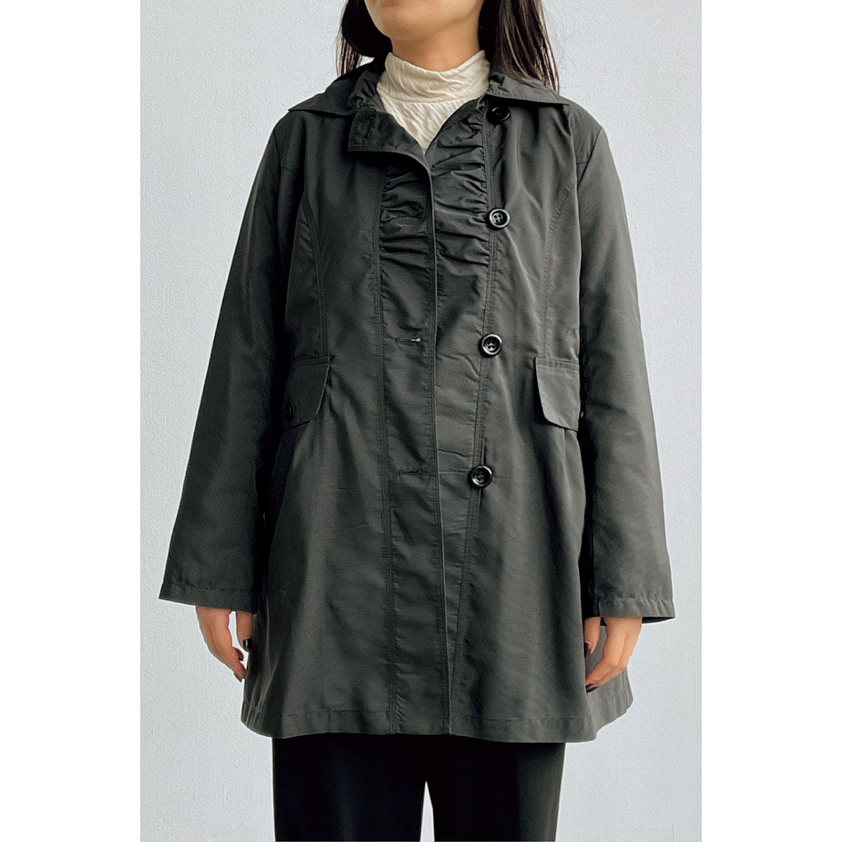 フロントにあしらったフリルが華やかで顔まわりを明るく見せてくれます。ほどよい光沢感とハリのある素材でお出かけにぴったり。腰まわりをふんわりカバーするシルエットで体型も自然と美しく。ー素材特性ーハリのあるやわらかな光沢素材。