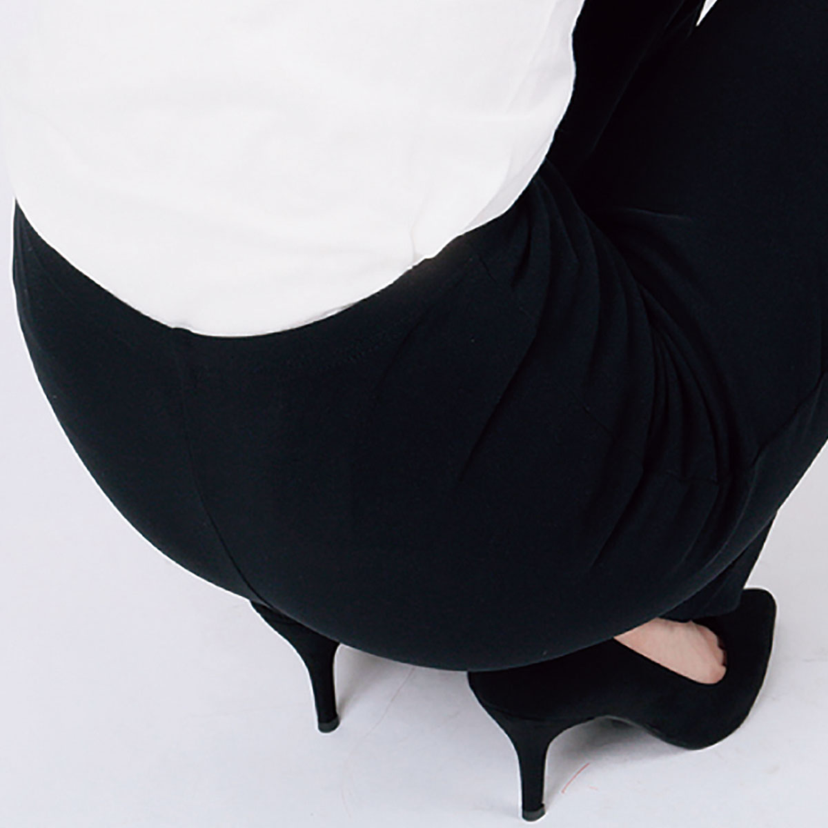 全方向ストレッチでストレスゼロ しっかり伸びるのにちゃんと元に戻るストレッチ素材。階段やしゃがんだりする動作もラク。