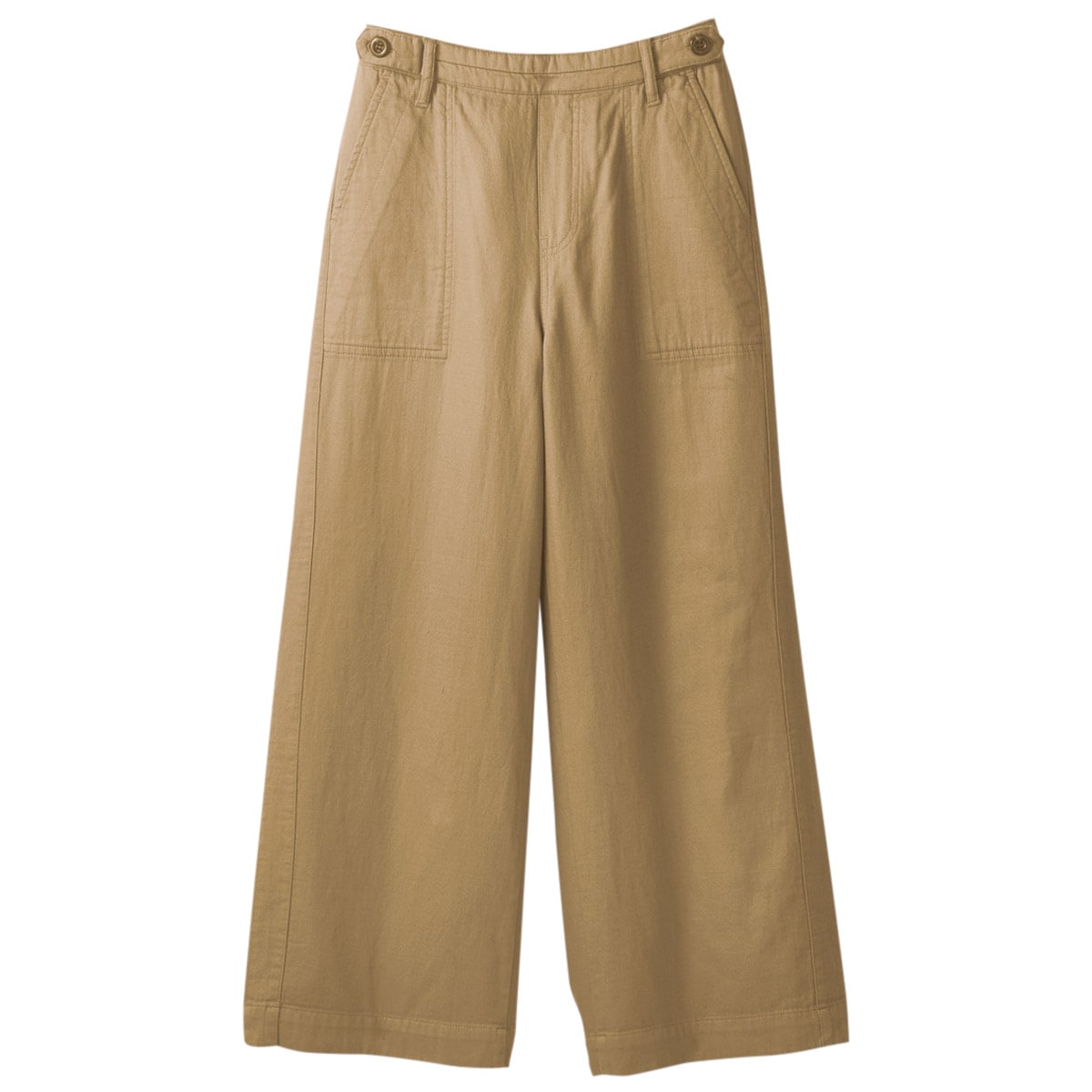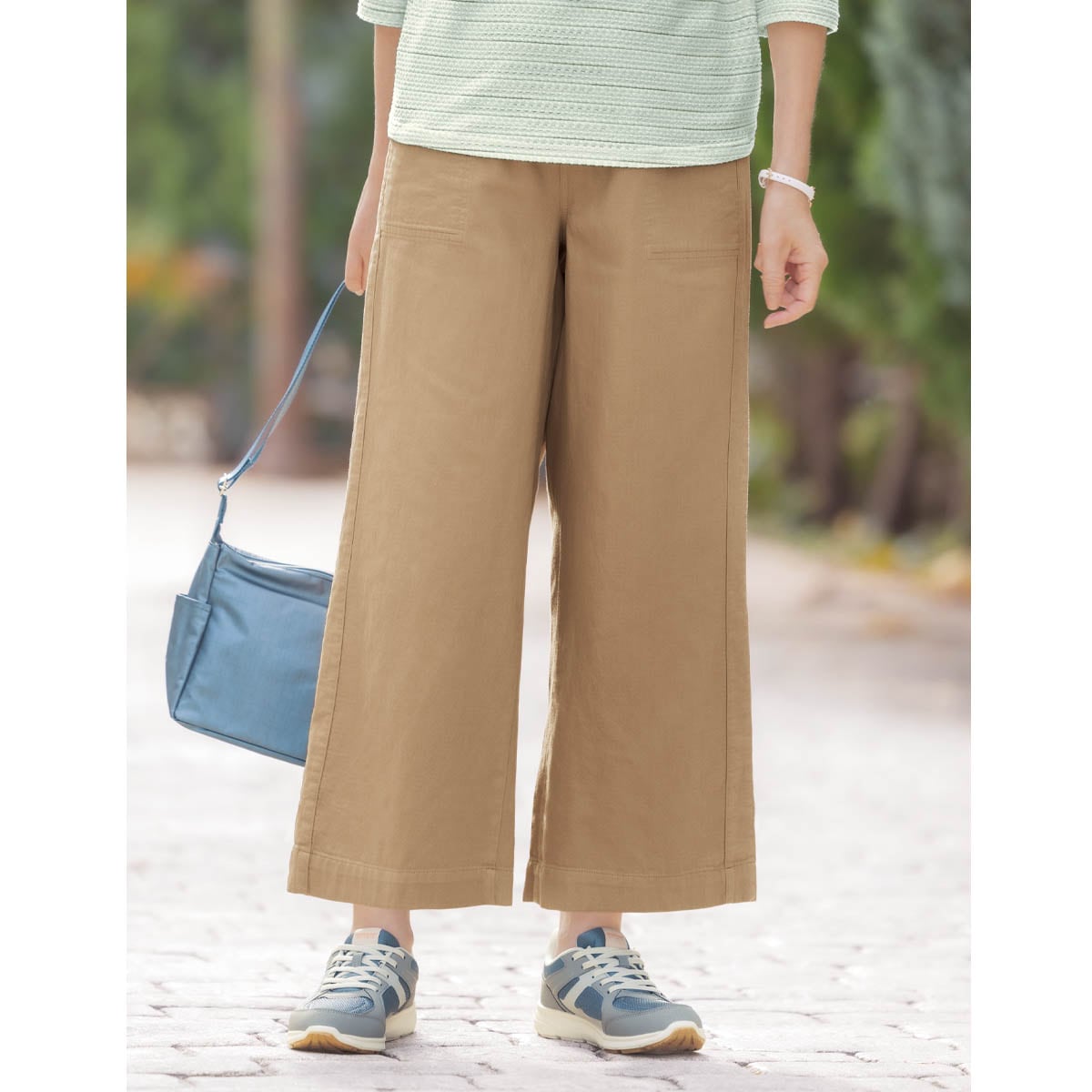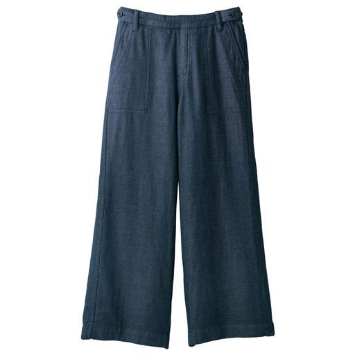 これからの季節に心地よいダブルガーゼ仕立てのワイドパンツです。太すぎないシルエットでコーディネートしやすく、脚のラインをカバーしてくれるのもうれしいポイント。ーデザインーファスナー風のステッチ仕上げでフロントすっきり。高め位置のポケットで脚長&小尻見え。ウエスト横の飾りボタンがさりげないポイント。ー素材特徴ー綿100%のガーゼを2枚重ね、軽くふんわりとした肌ざわり。
