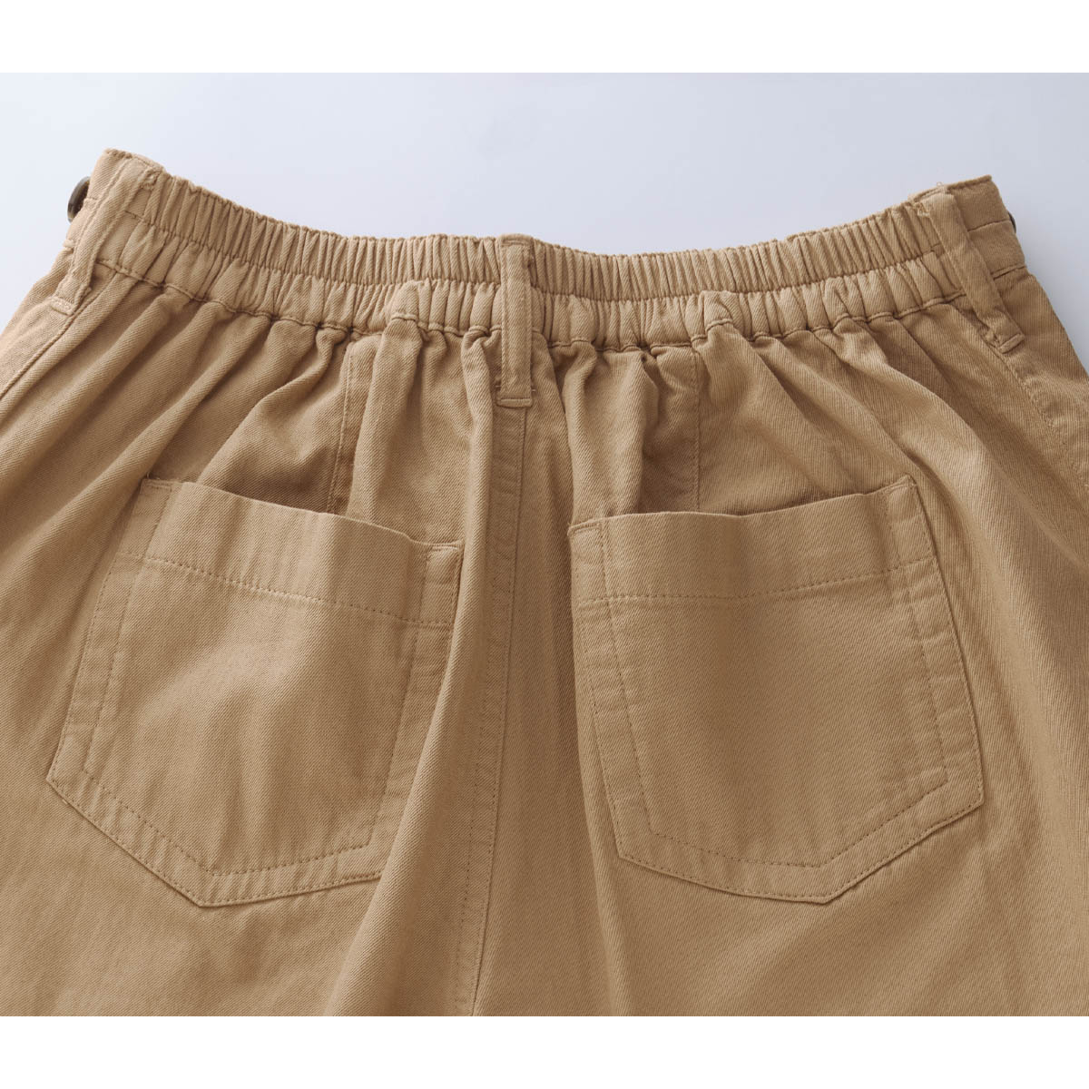 ■綿100%●ウエスト後ろゴム仕様、前後左右ポケット●洗濯機OK(ネット使用)●中国製