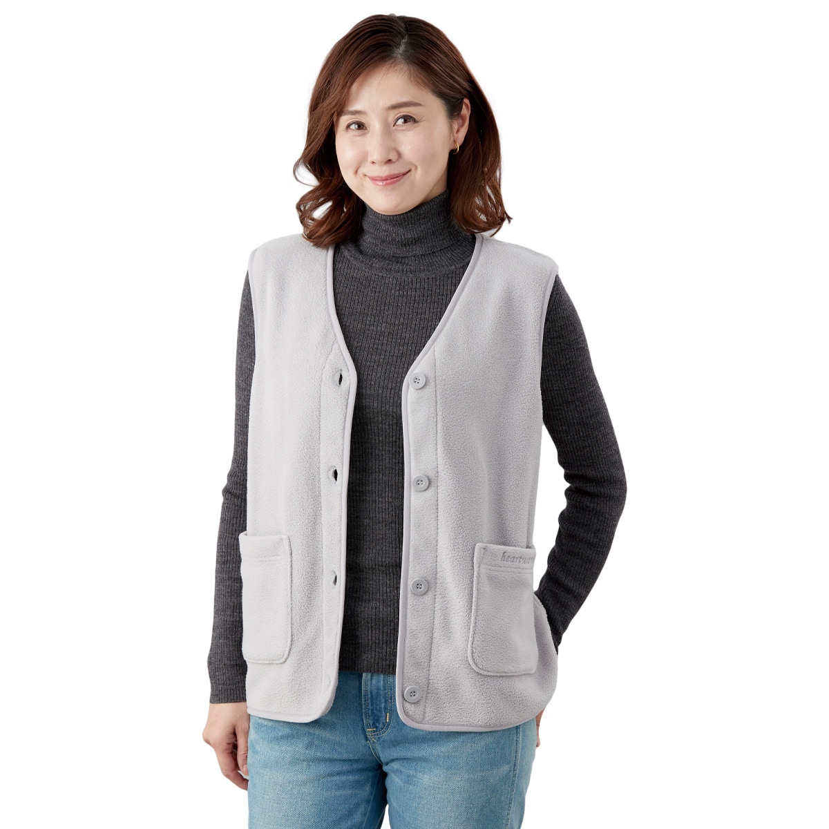 • 両面フリース前開きベスト | ライトグレー