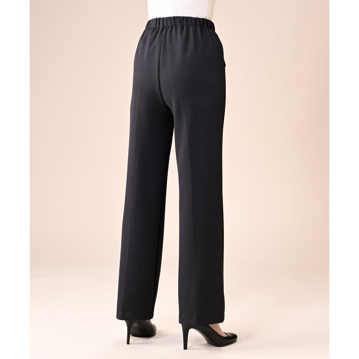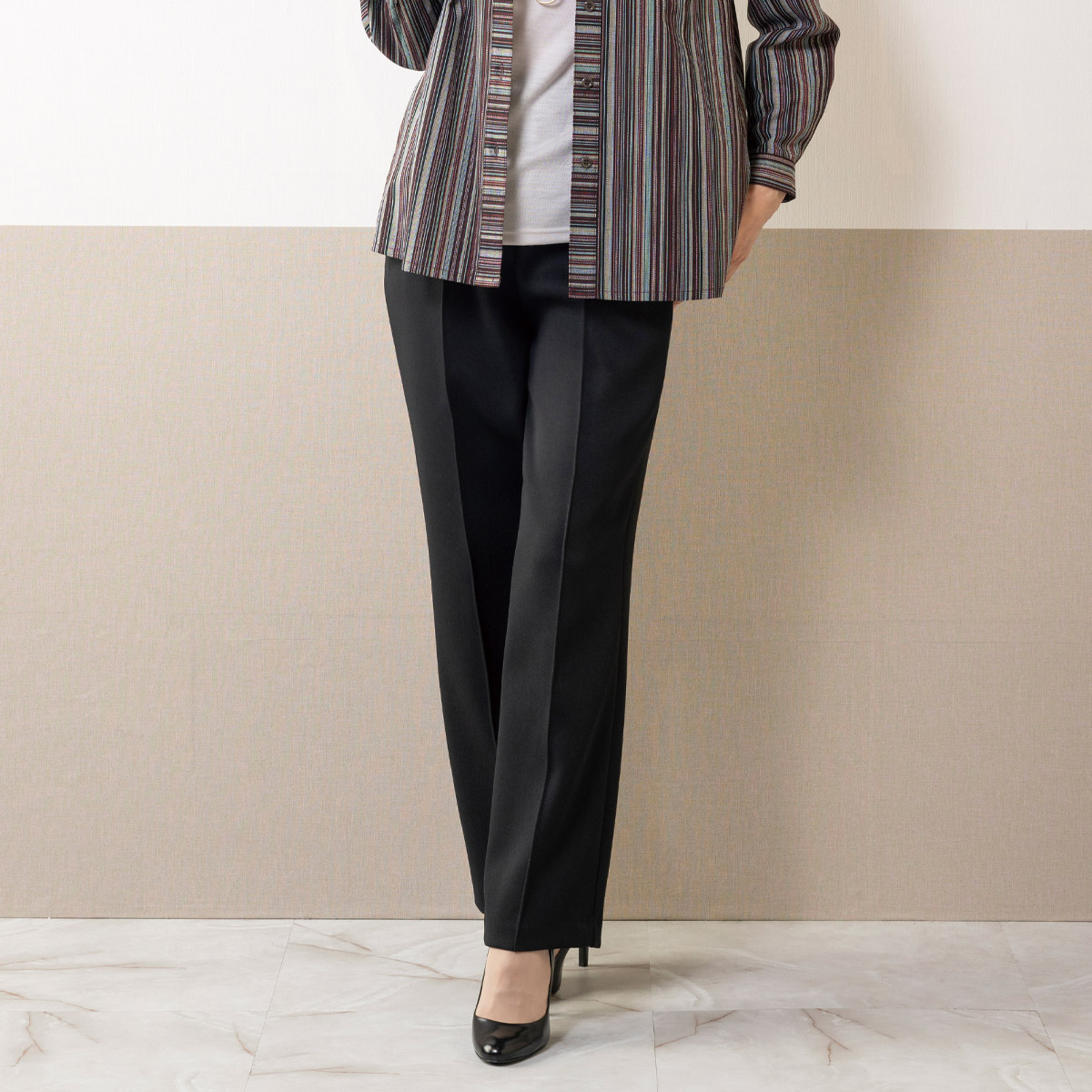 ほどよい厚みで脚のラインが出にくく、フロントのピンタックで脚長効果!