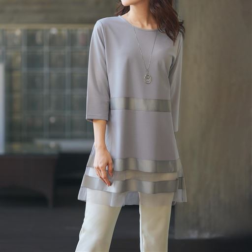 異素材ボーダー切替えチュニック