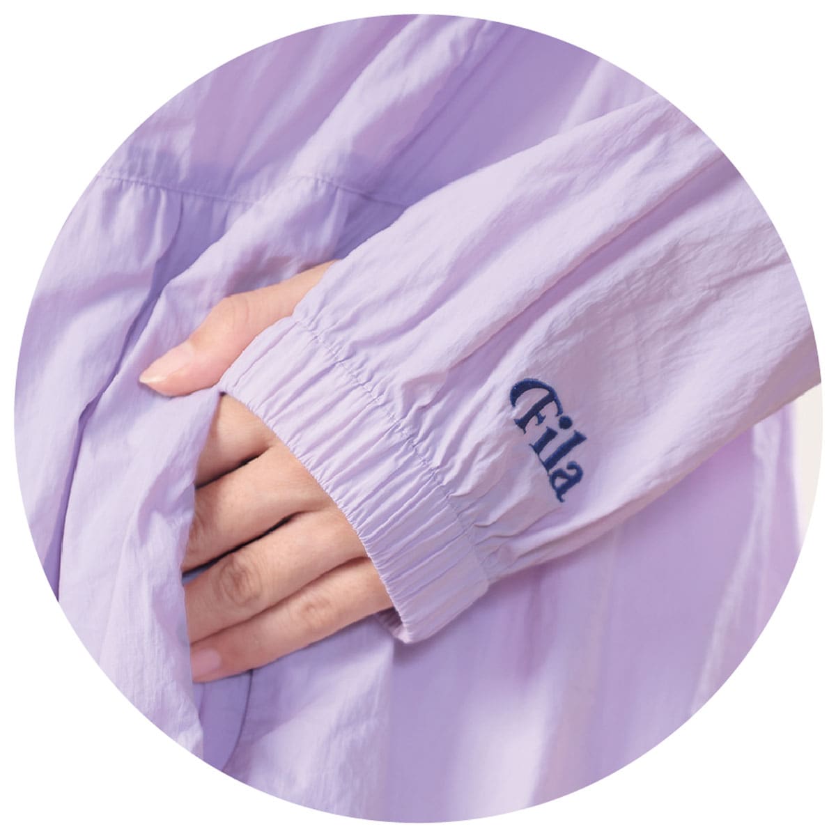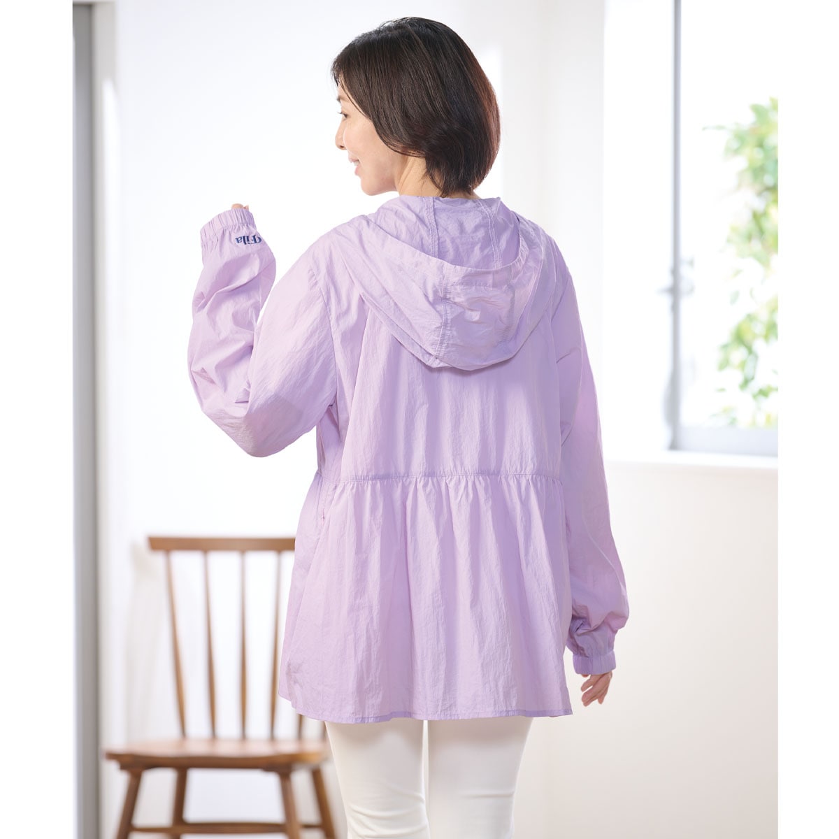 晴れの日も雨の日もこれ1枚でOK。コンパクトに折りたためるから、旅行にも!パーカーなのにフェミニン!ーデザインーウエスト切替ギャザーで華やぎをプラス。袖は手の甲までカバーする指穴付きで、日焼け対策。ー素材特性ー急な雨でも安心のはっ水加工付き。【UVカット率約90%】【はっ水】