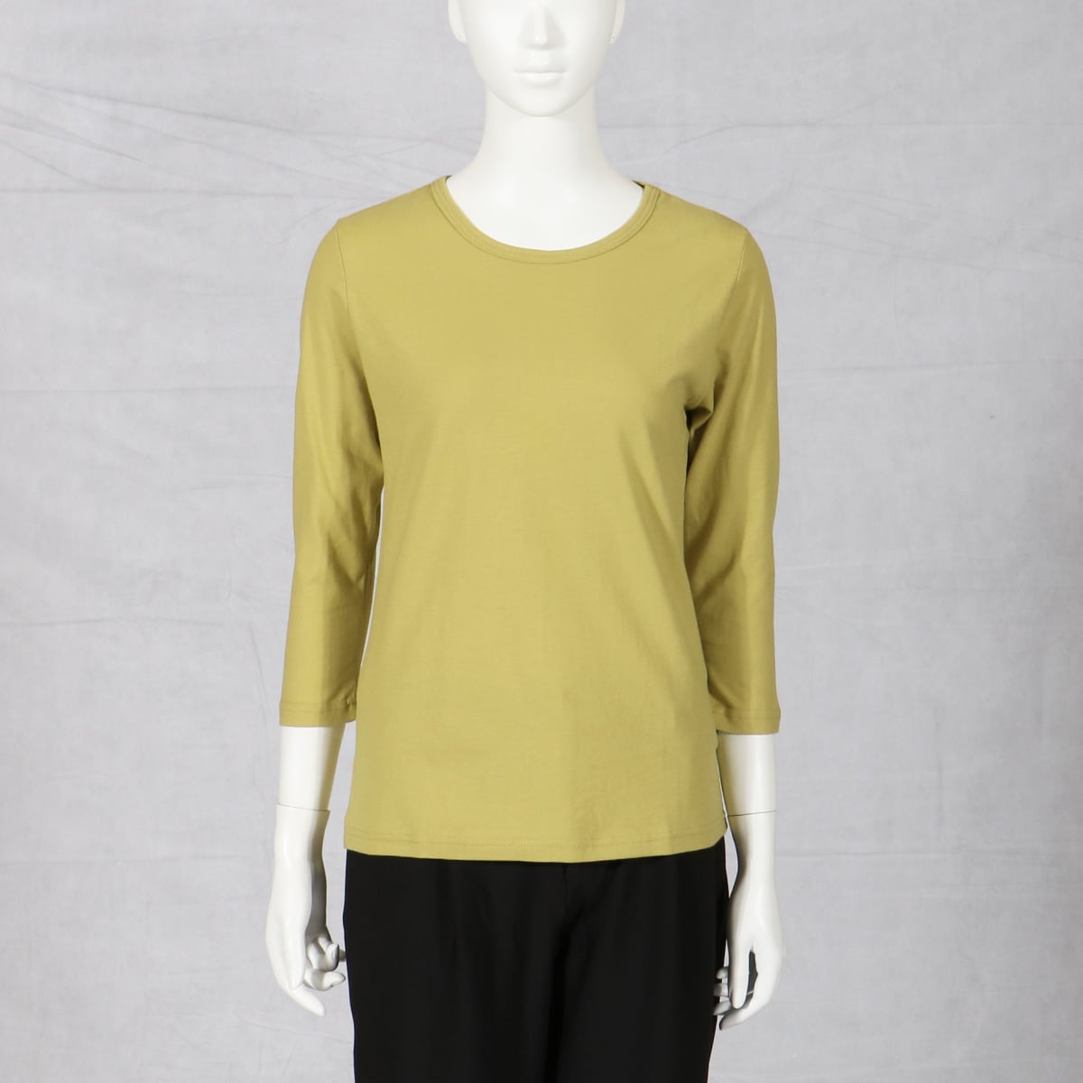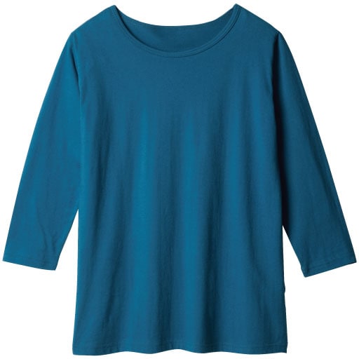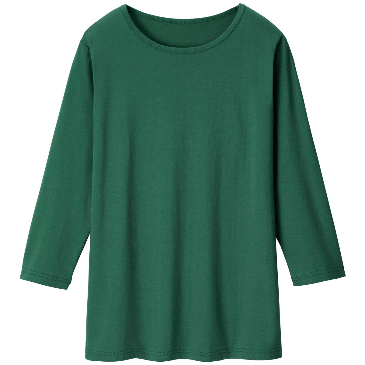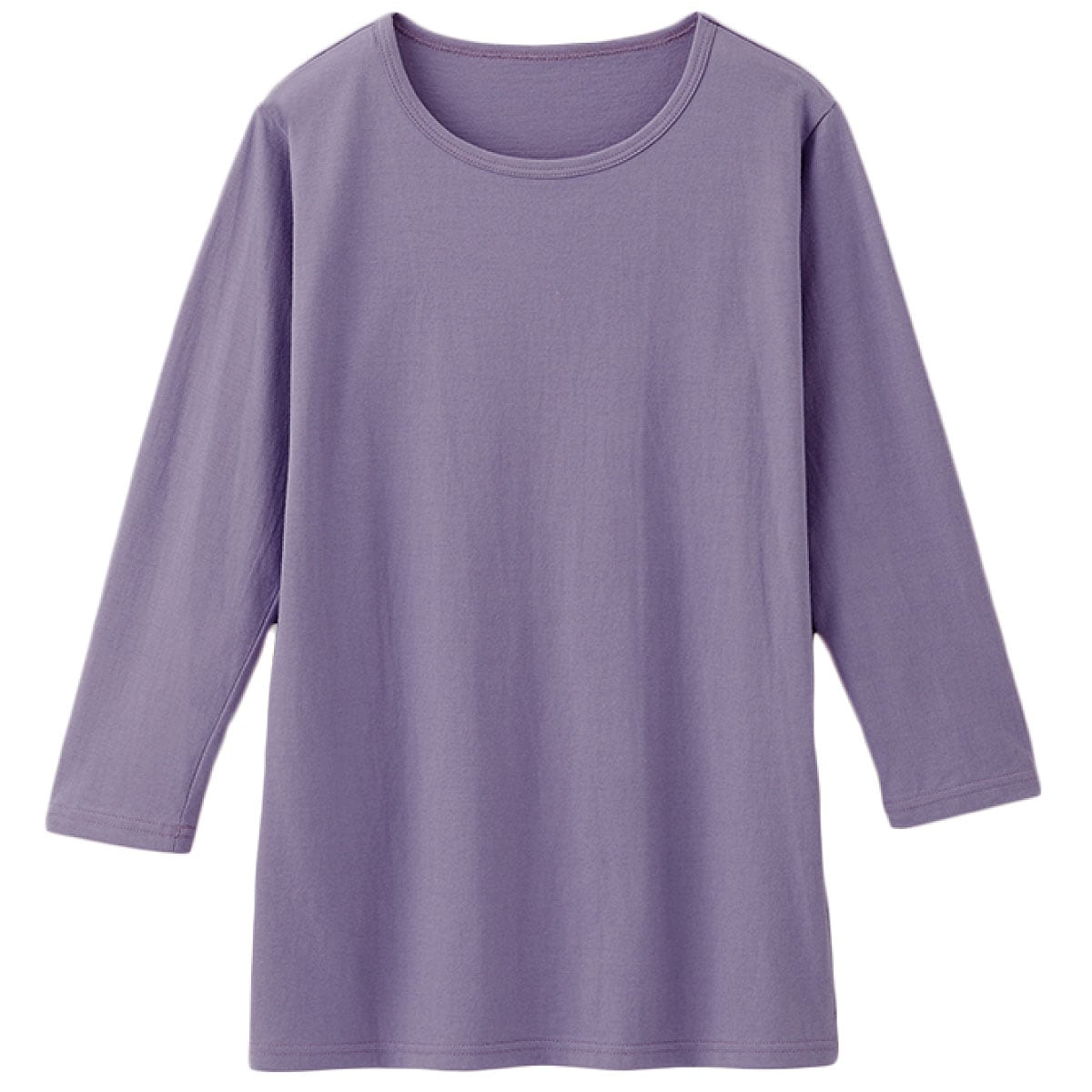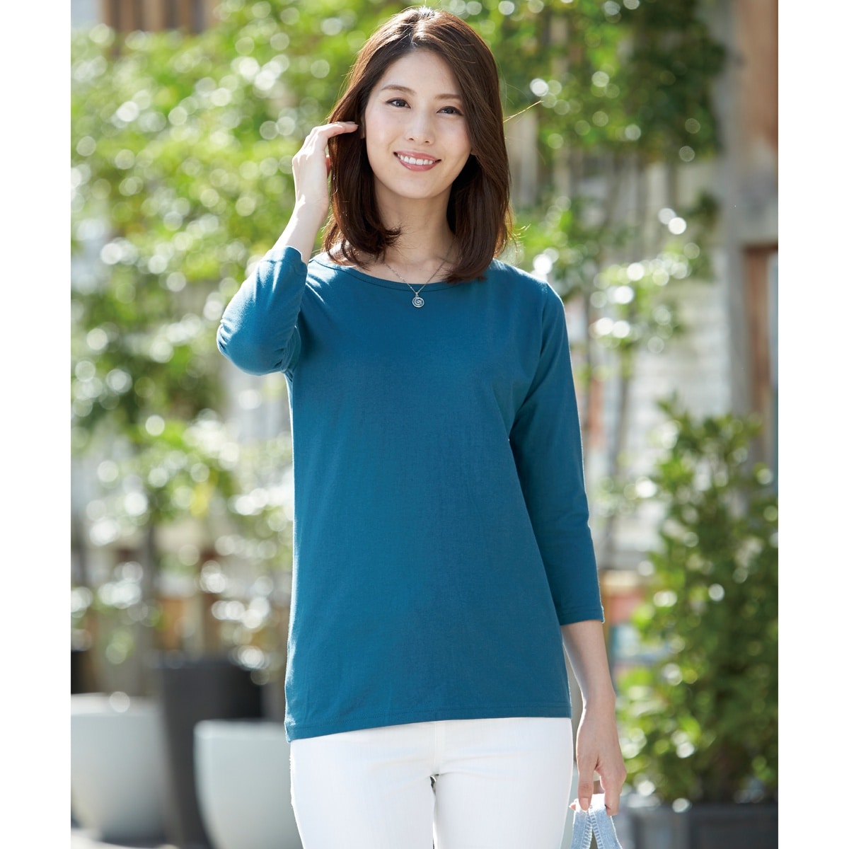色合い・素材・着心地と三拍子揃ったベーシックTシャツです。普段使いにもお出かけにも合わせやすい。ーデザインー気になる二の腕をきれいに見せる7分袖。鎖骨をきれいに見せるネックラインで、手を上げてもおなかも背中も出ない丈感なのも嬉しいポイント。ー素材特性ー洗っても型崩れしにくい素材。糸を「S撚り」と「Z撚り」を互い違いにすることで、型崩れしにくくなります。
