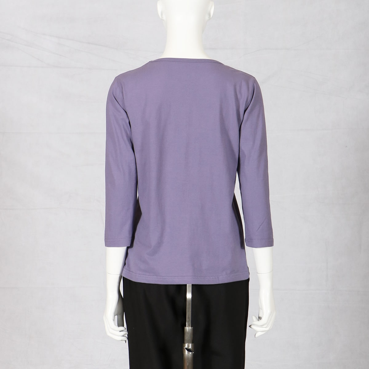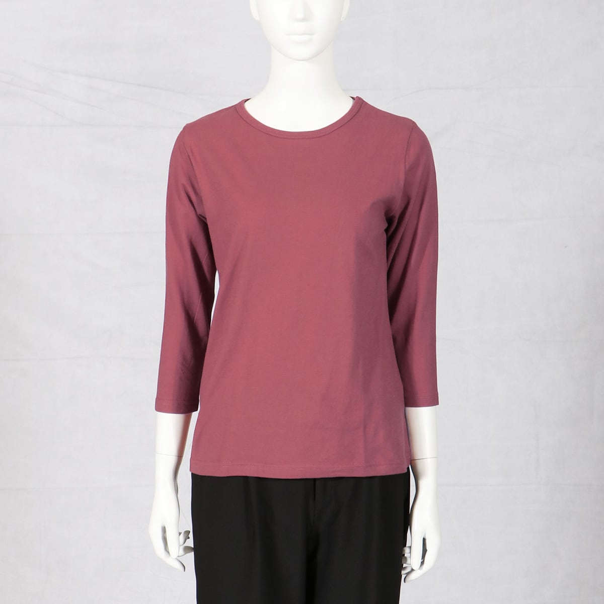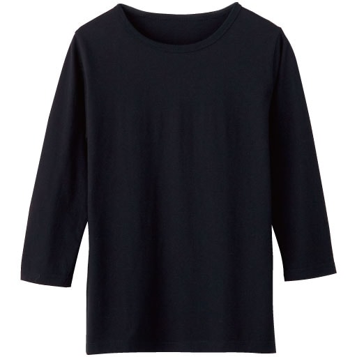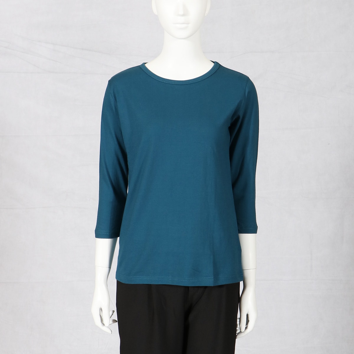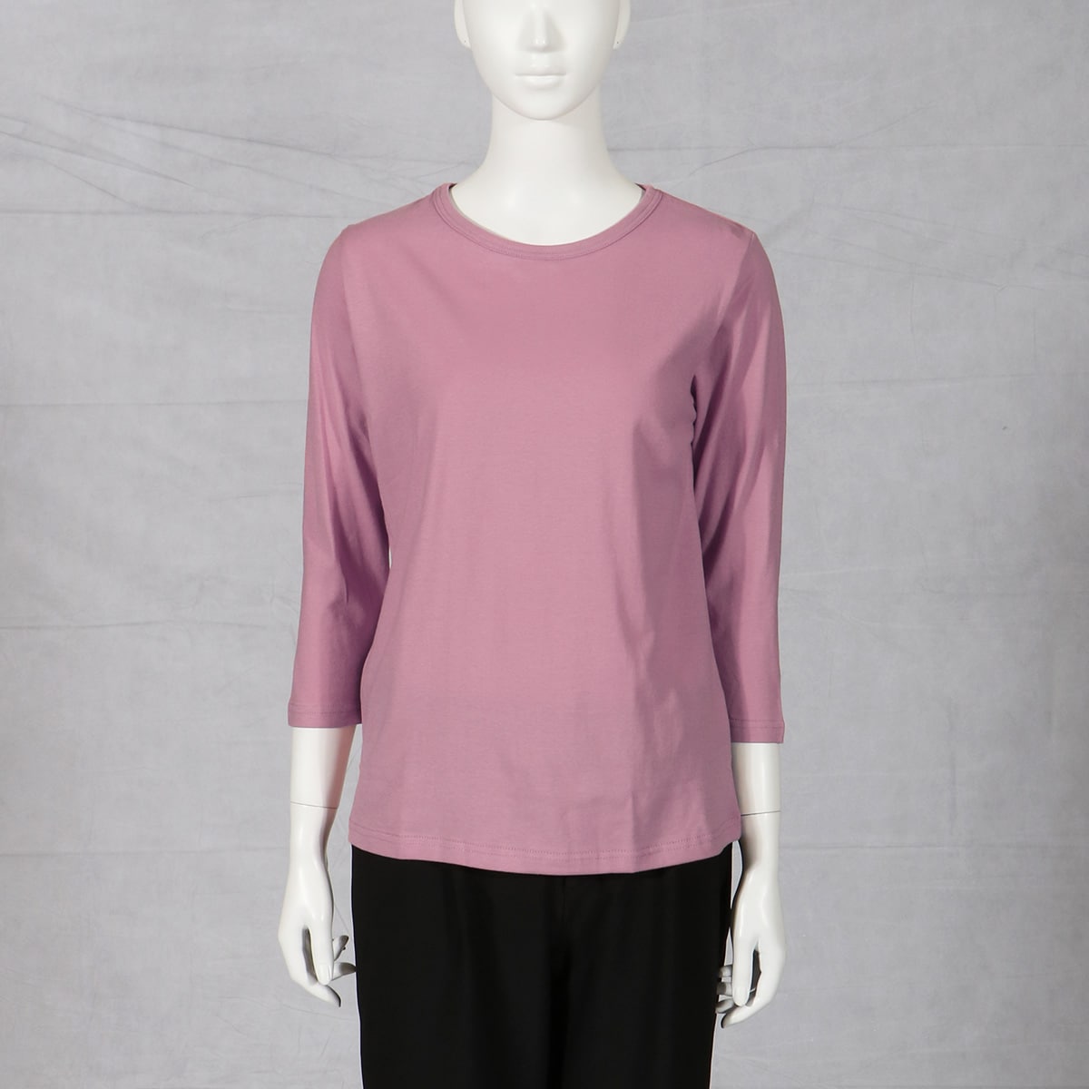 色合い・素材・着心地と三拍子揃ったベーシックTシャツです。普段使いにもお出かけにも合わせやすい。ーデザインー気になる二の腕をきれいに見せる7分袖。鎖骨をきれいに見せるネックラインで、手を上げてもおなかも背中も出ない丈感なのも嬉しいポイント。ー素材特性ー洗っても型崩れしにくい素材。糸を「S撚り」と「Z撚り」を互い違いにすることで、型崩れしにくくなります。
