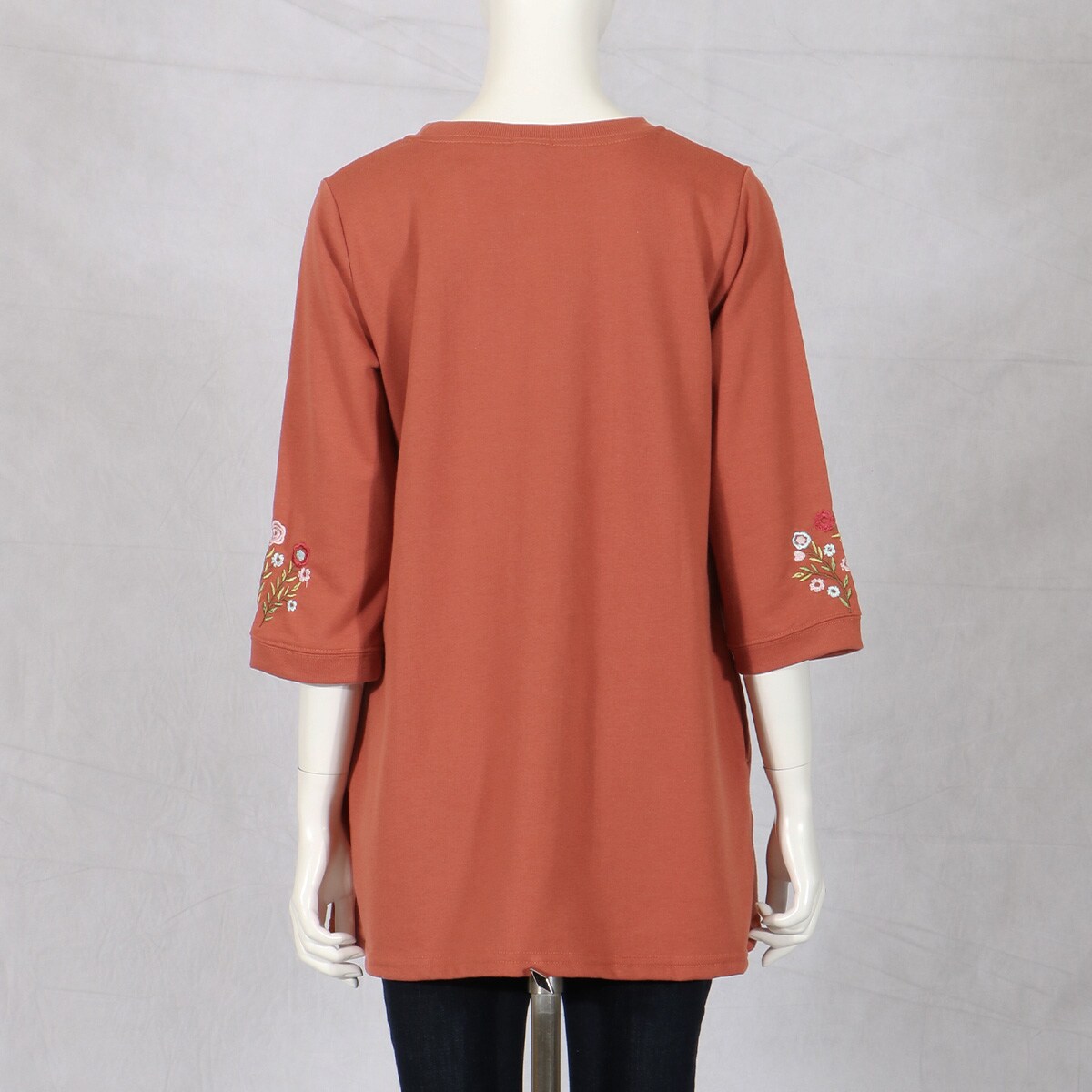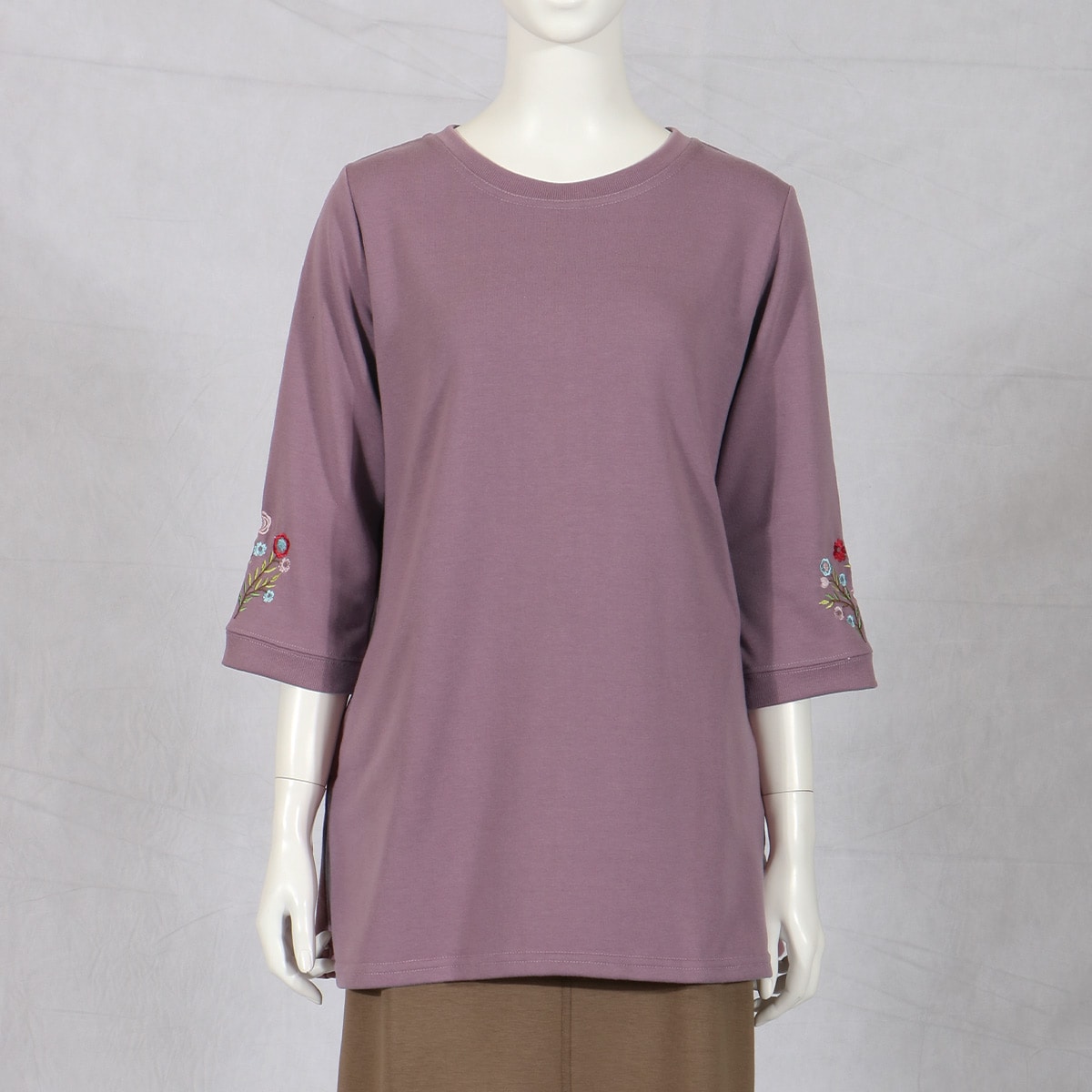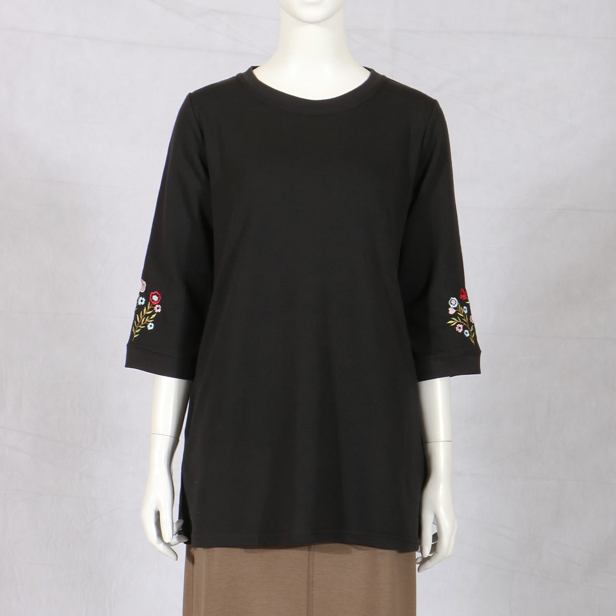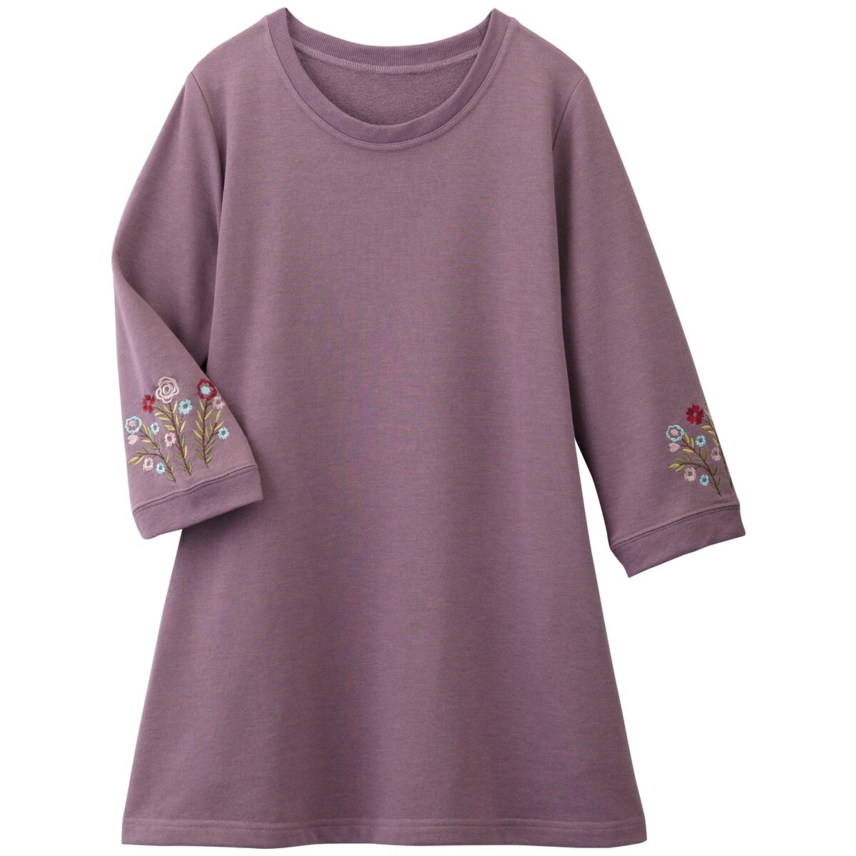 愛用者多数の人気チュニックは、袖の花刺しゅうが優しい雰囲気