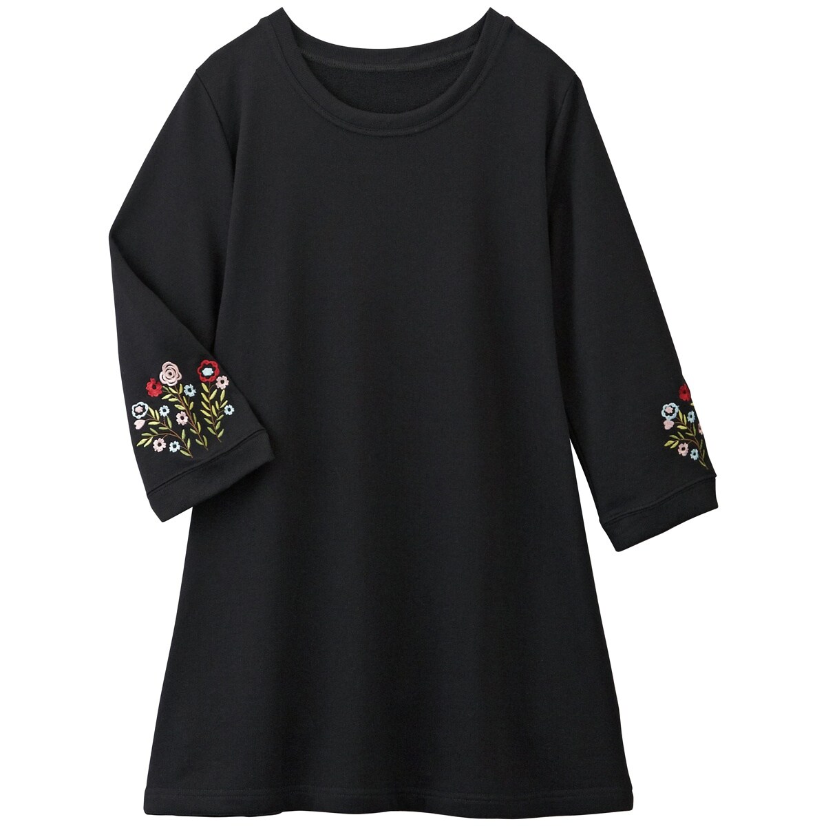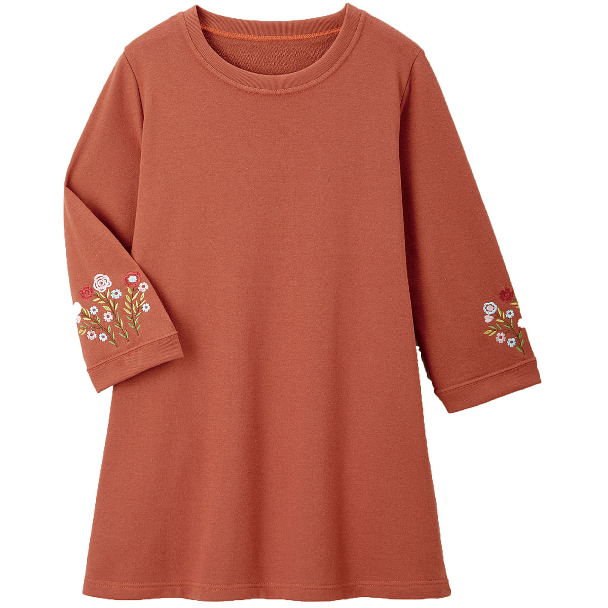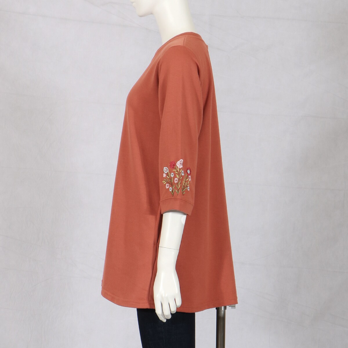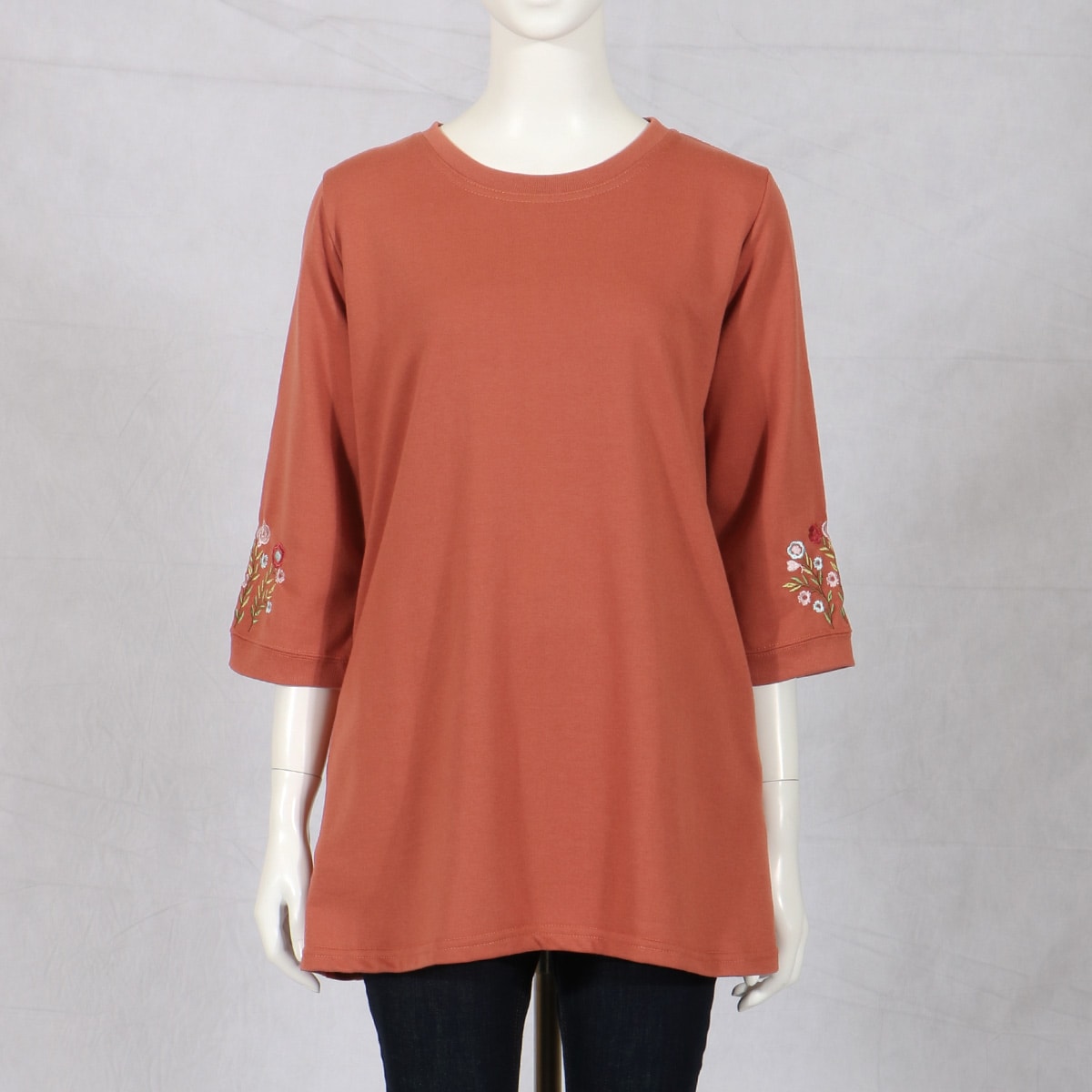 愛用者多数の人気チュニックは、袖の花刺しゅうが優しい雰囲気