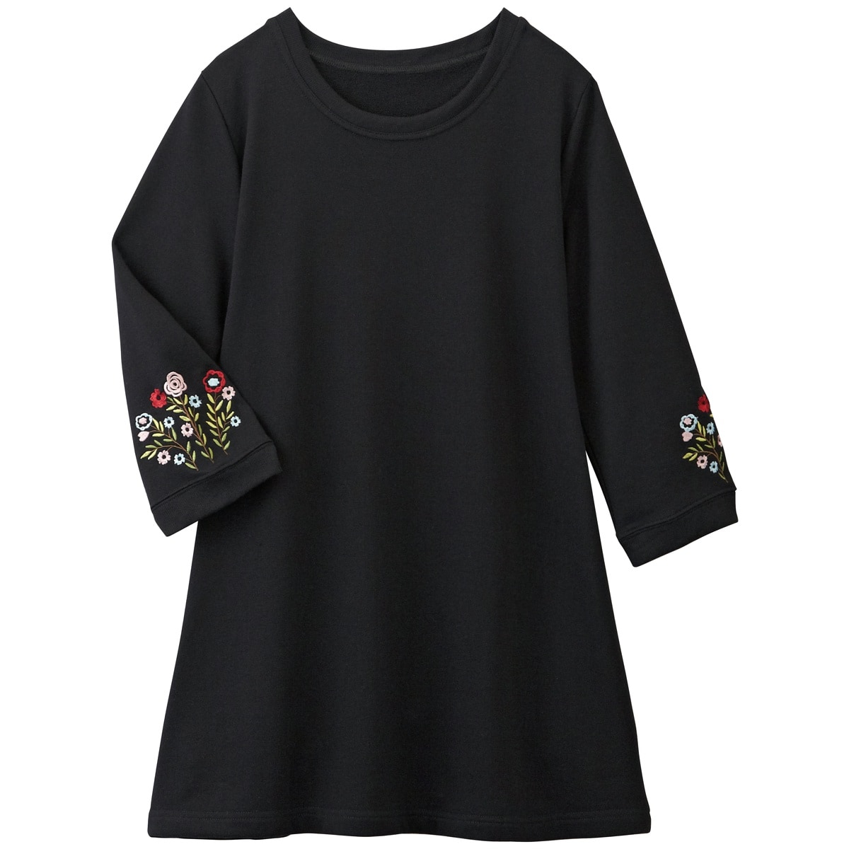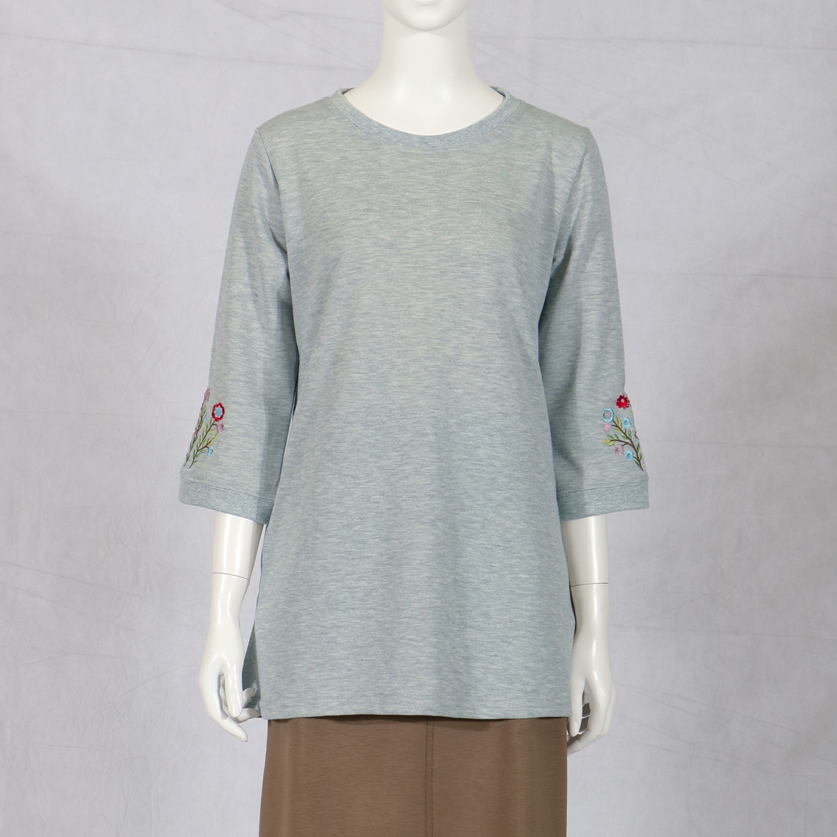 愛用者多数の人気チュニックは、袖の花刺しゅうが優しい雰囲気。