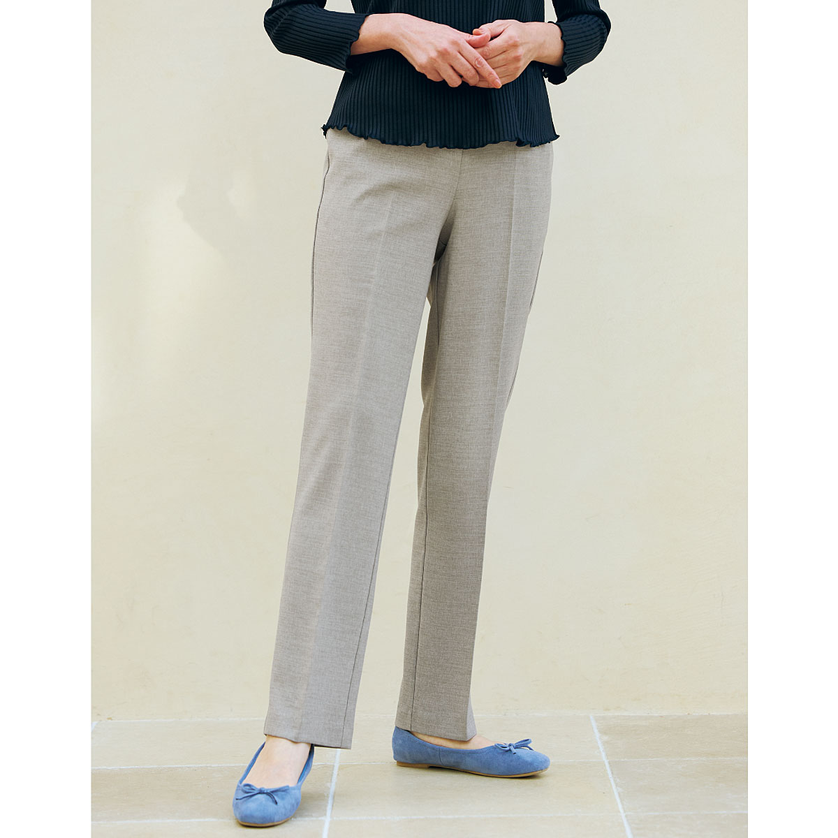 シャリッと爽やかな肌心地!旅行にもおすすめのパンツ。。すっきりストレートシルエットにセンタープレスを施し、すらり感がアップ。どんなシーンにも合わせやすく、春から夏までロングシーズン重宝します。-POINT-58cmと63cmの選べる2丈展開!ウエスト総ゴムでラクチン!ゴムは取替え口あり。股上深めで背中が出にくい。-素材特性-表面感があり、シャリッと爽快。シワになりにくいのも嬉しい。・吸水速乾