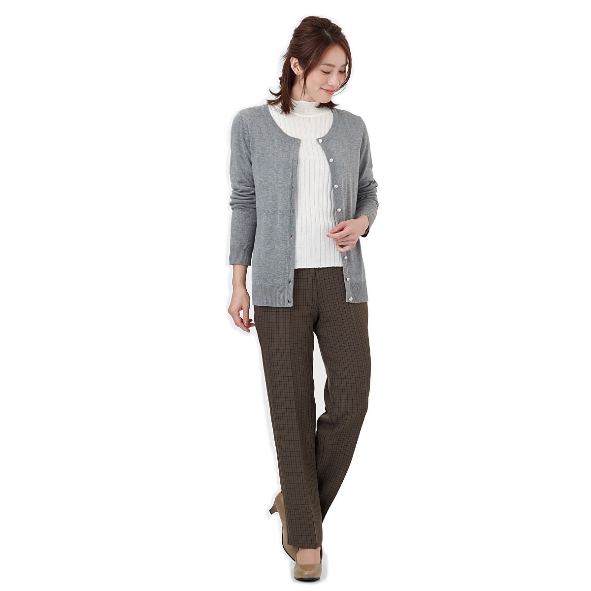 お腹まですっぽり包み込む、股上深めパンツ。-デザイン-センタープレス仕上げで、すっきりとしたシルエット。背中も出にくい安心の股上。ウエストは総ゴム仕様でお腹ラクラク。-素材特徴-シワになりにくく、はき心地の良い軽い素材感。