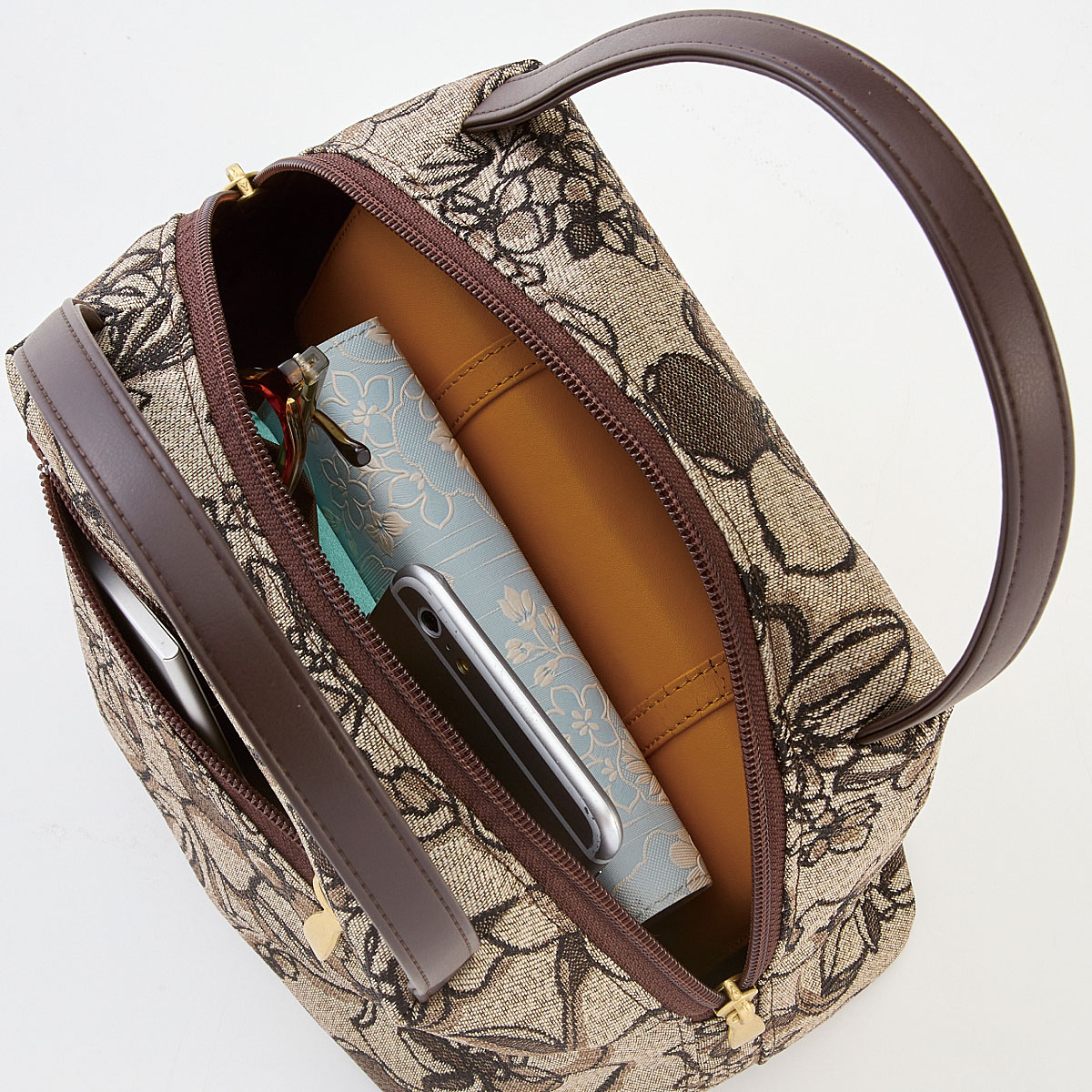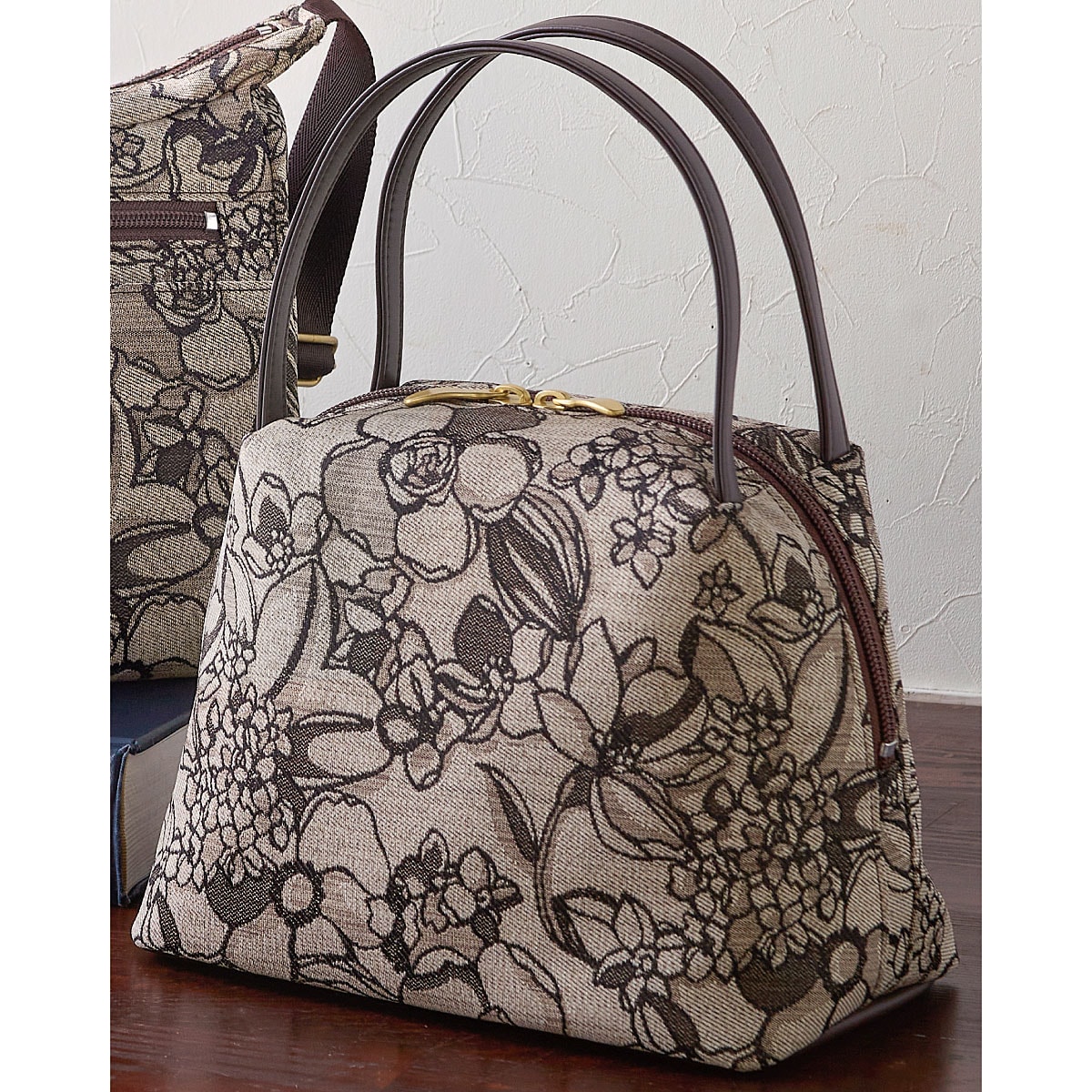 大阪八尾市で創業以来55年に渡り、バッグの製造販売業に従事。バッグの形状、用途に適した素材を選別。職人の確かな技術を駆使し、使いやすさとファッション性にこだわったものづくりを行っています。ーこだわりPOINTー伝統ある尾張の「尾州織」で表現した花柄がポイント。ガバッと開いて取り出しやすい。