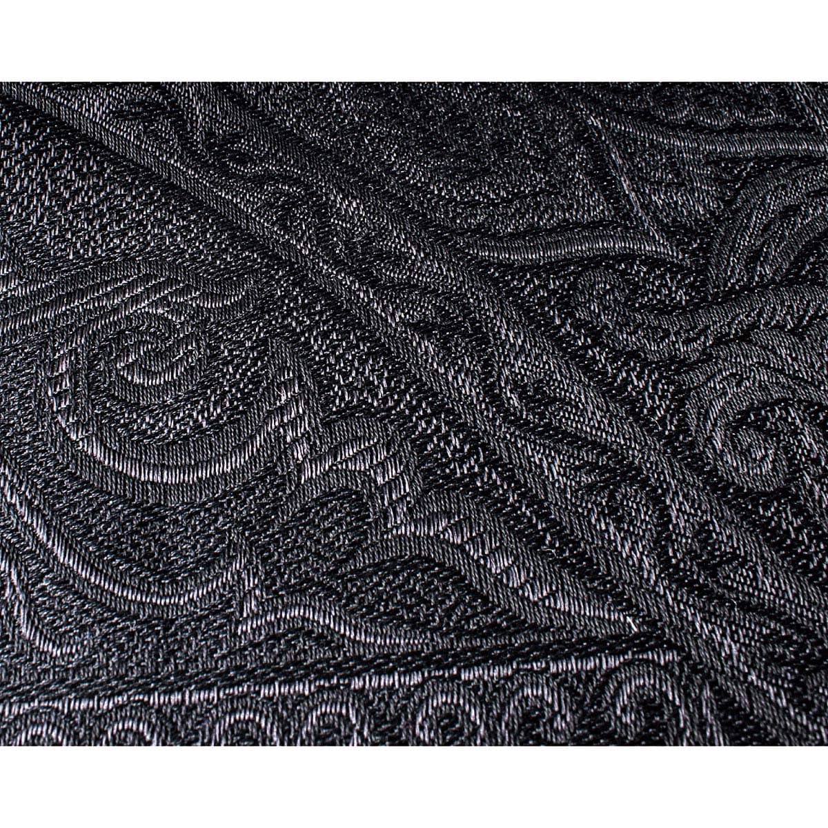 ブラック生地アップ立体的で重厚感のあるジャカード織りとシルクの光沢感。