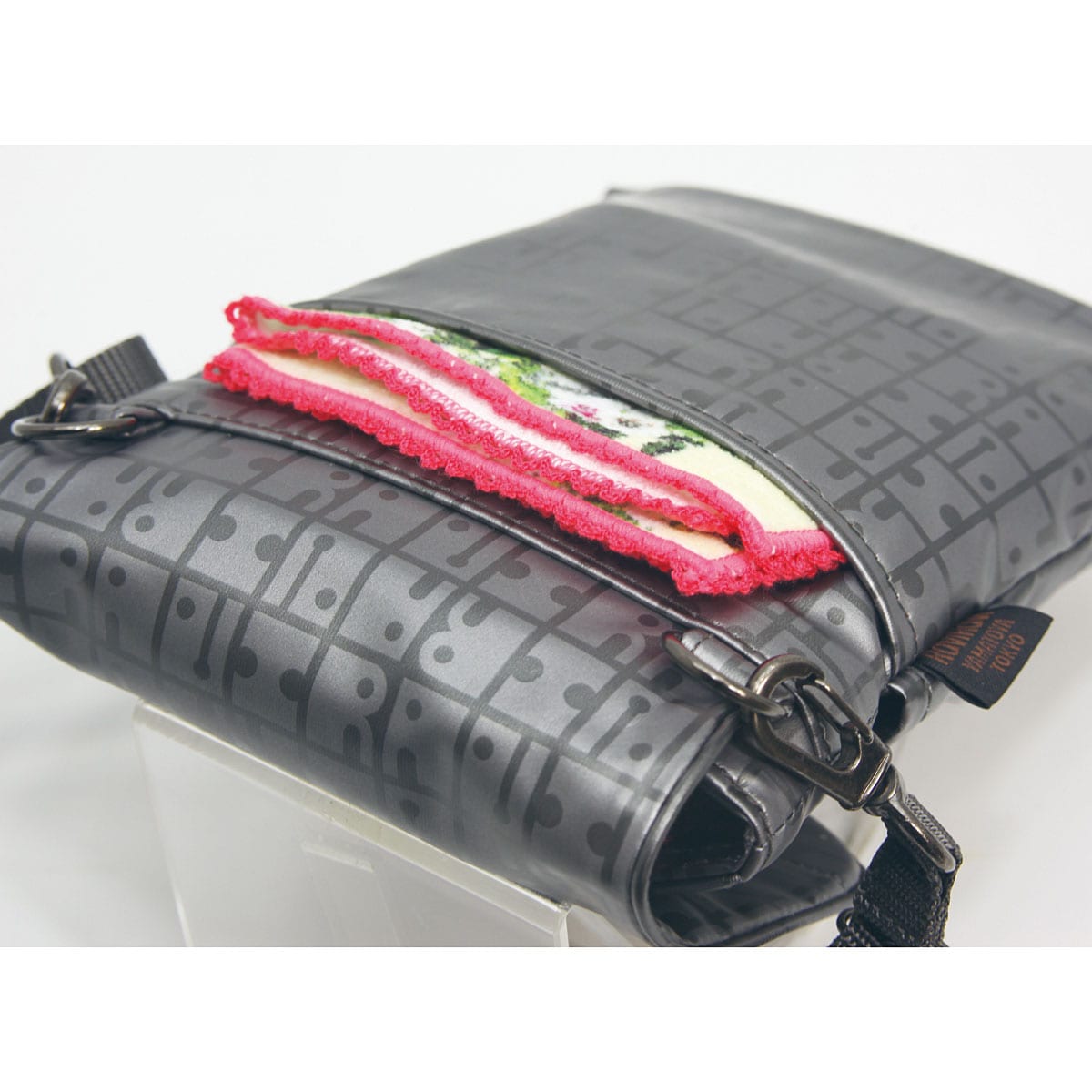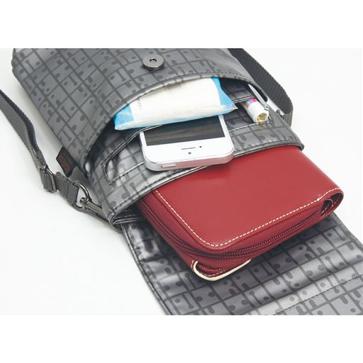 -素材特徴-ヤマト屋ならではのポリカーボネイト薄合皮は軽く、丈夫で長持ち。湿気の多い日本の気候に負けず、色あせや変質しにくいので、長く快適に使えます。【ヤマト屋】創業明治25年の老舗。高品質なものづくりを追求する職人によって丁寧に作られています。■素材/[表地・裏地]ナイロン(表面:ポリカーボネイトコーティング)■サイズ(約cm)/[本体]幅15×高さ20×マチ3 [ショルダーベルト]64~122(調節可・取り外し可能)■重量/約120g■仕様/[開閉]マグネットボタン式 [前ポケット]オープン×2 [後ろポケット]オープン×1※洗濯機OK(ネット使用)※商品によって柄の位置が多少異なります。●日本製
