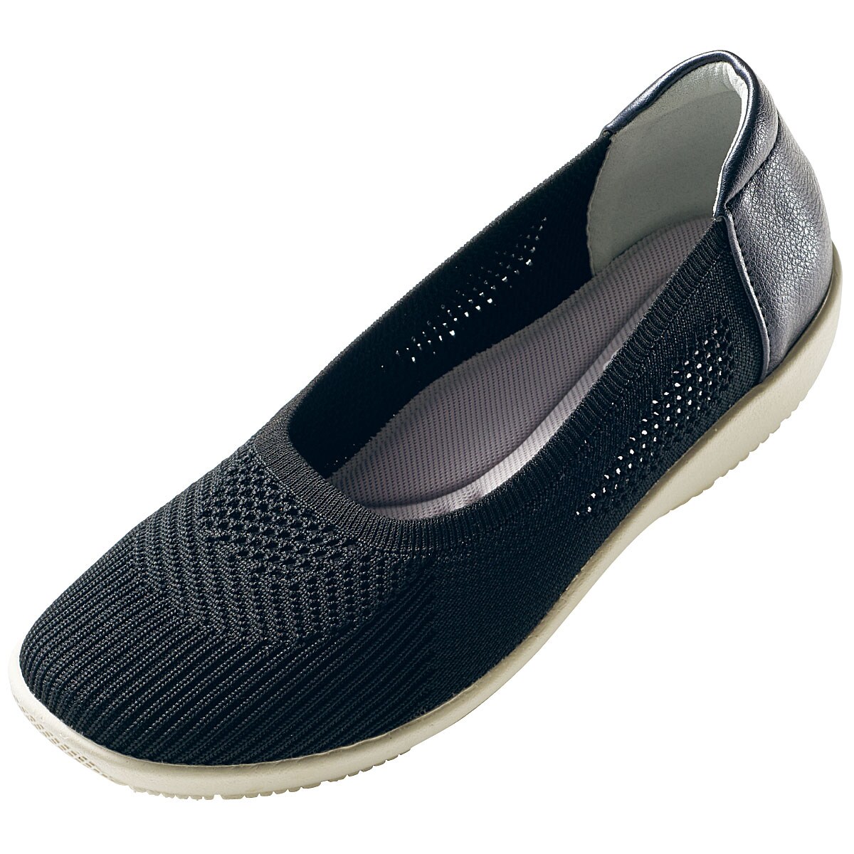 足を締め付けず、ムレにくい快適なはき心地で、幅広い洋服に合わせやすい。軽量で歩きやすいのもうれしいポイント。ーデザインーかかと、土踏まずを包み込むようにフィットするU 字型アーチクッションで長時間歩いても疲れにくい。ー素材特性ー柔らかなニット素材を使用。かかと部分は合成皮革で、かかとをしっかりホールドします。【軽量約110g(23cm片足)】【抗菌防臭(中敷)】