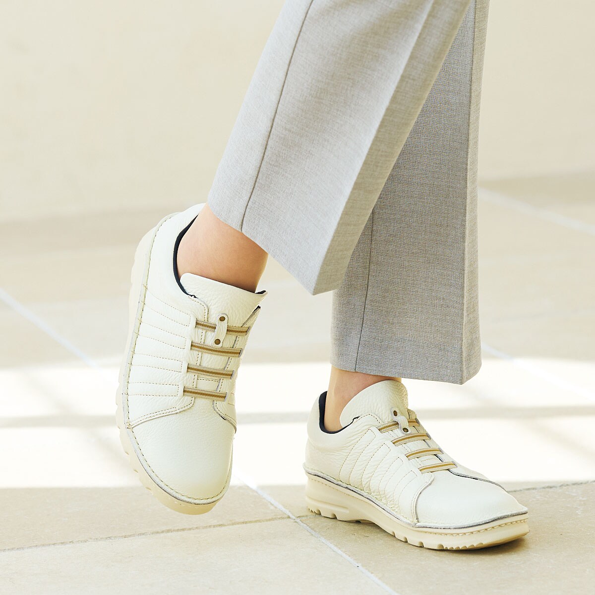 • ヒモは伸縮性のあるゴムだから脱ぎはきラクラク。