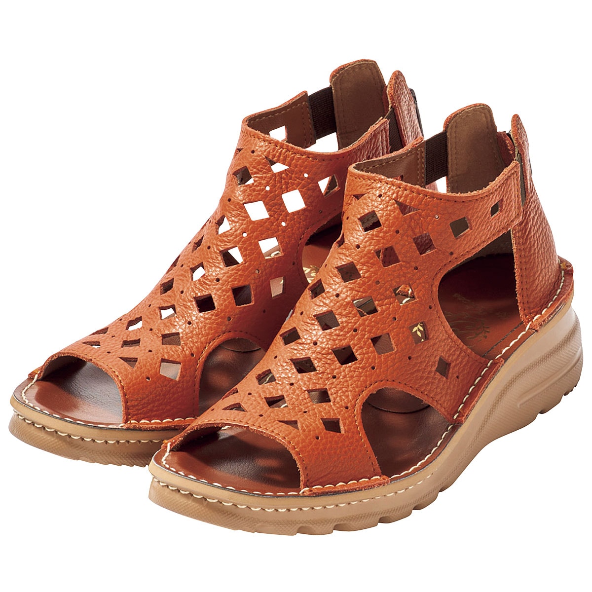 イタリアンレザーを使用し、日本で丁寧に仕上げた本革ブーツサンダル。コーデを華やかに魅せるパンチングデザインながら、足への負担軽減や歩きやすさへのこだわりがギュッと詰まっています。靴下との相性も抜群です。・衝撃吸収率約88% ※一般財団法人 化学物理評価研究機構調べ・幅広4E相当・軽量約190g(23cm片足)