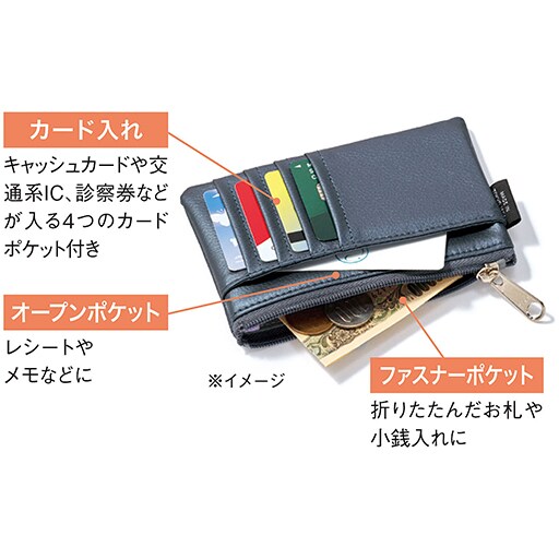 現金やカードなどが入り、お財布代わりになる手の平サイズのケース。薄くてバッグの中で場所をとらず、軽さと丈夫さを兼備した老舗ならではの素材で、使い勝手のよさが魅力です。-素材特性-ヤマト屋(※)ならではのポリカーボネイト薄合皮は、軽くて丈夫。※創業明治25年の老舗ブランド。高品質なものづくりを追求する職人によってひとつひとつ丁寧に作られています。-こだわりPOINT-キャッシュカードや交通系IC、診察券などが入る4つのカードポケット付き。