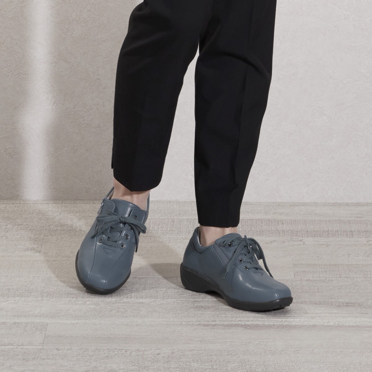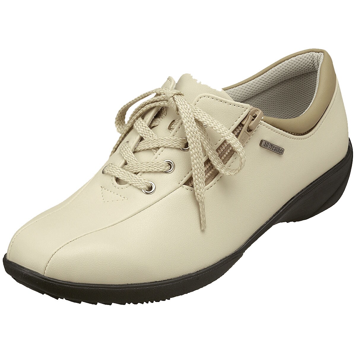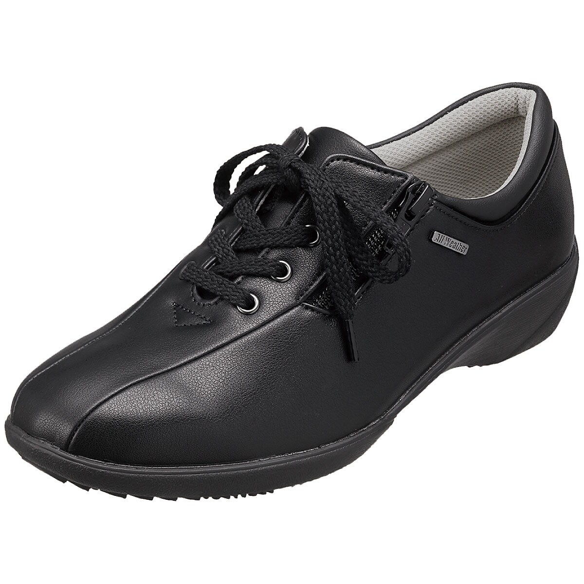 シンプルなデザインで合わせやすく、天候やシーズンを問わずお出かけが楽しめるシューズ。スニーカー感覚で軽やかに歩けます。ーこだわりPOINTー・脱ぎはきスムーズ…甲外側ファスナーと内側ゴムで脱ぎはきラクチン。・爽やかなはき心地…抗菌加工を施したさらっとしたメッシュ素材の中敷。・安定歩行をサポート…靴底の一部にグリップ性のあるゴムを使用。・かかと部分には足あたりが優しいかかとクッション付き。
