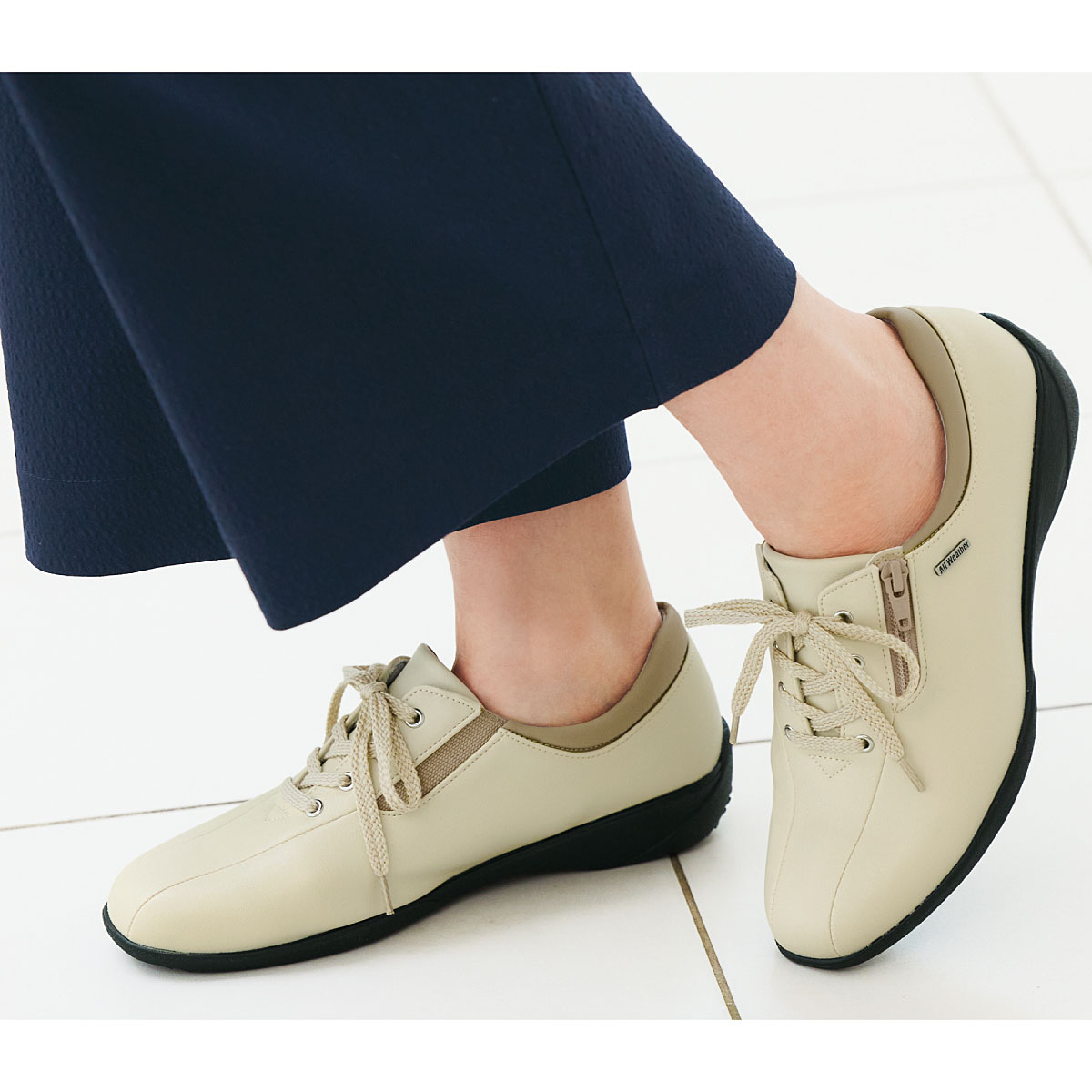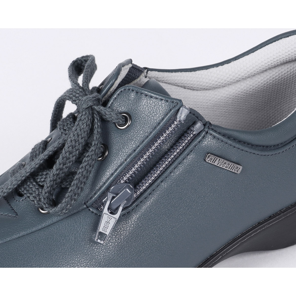 甲外側ファスナーと内側ゴムで脱ぎはきラクチン