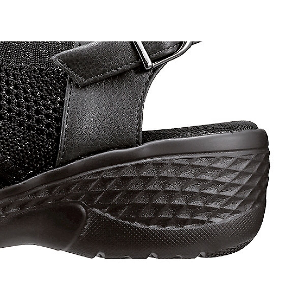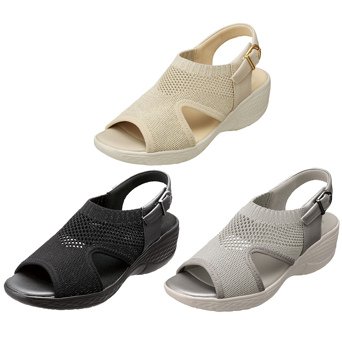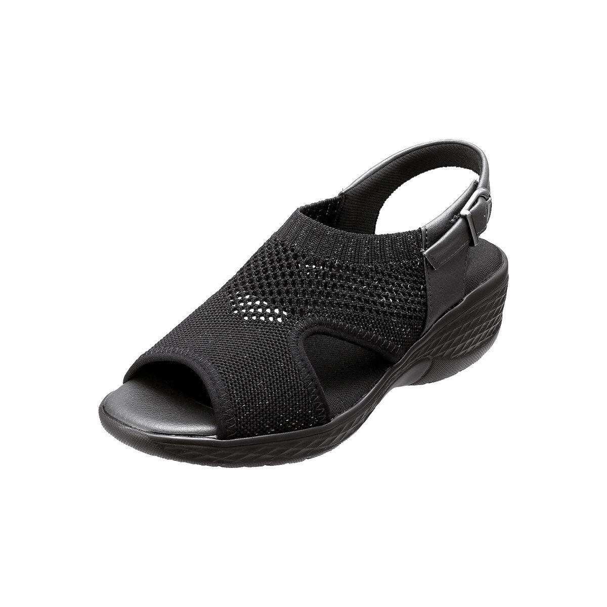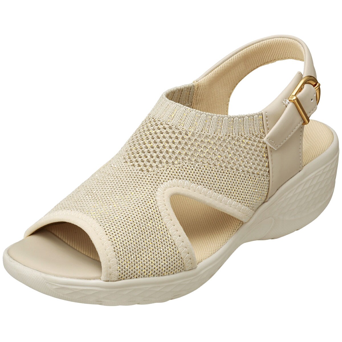 アッパーのラメのきらめきが足元を格上げ。やや高めながらも安定感のあるソールがスムーズな歩行をサポート。ーこだわりPOINTー全色、甲材にはキラめくラメ入りニットを使用しており、ソフトなニットの素材が甲まわりにフィット。ベルトバックル内側の隠しゴムで脱ぎはきしやすい。クッション性のあるインソールが足裏にふんわりフィット。【抗菌防臭(中敷)】