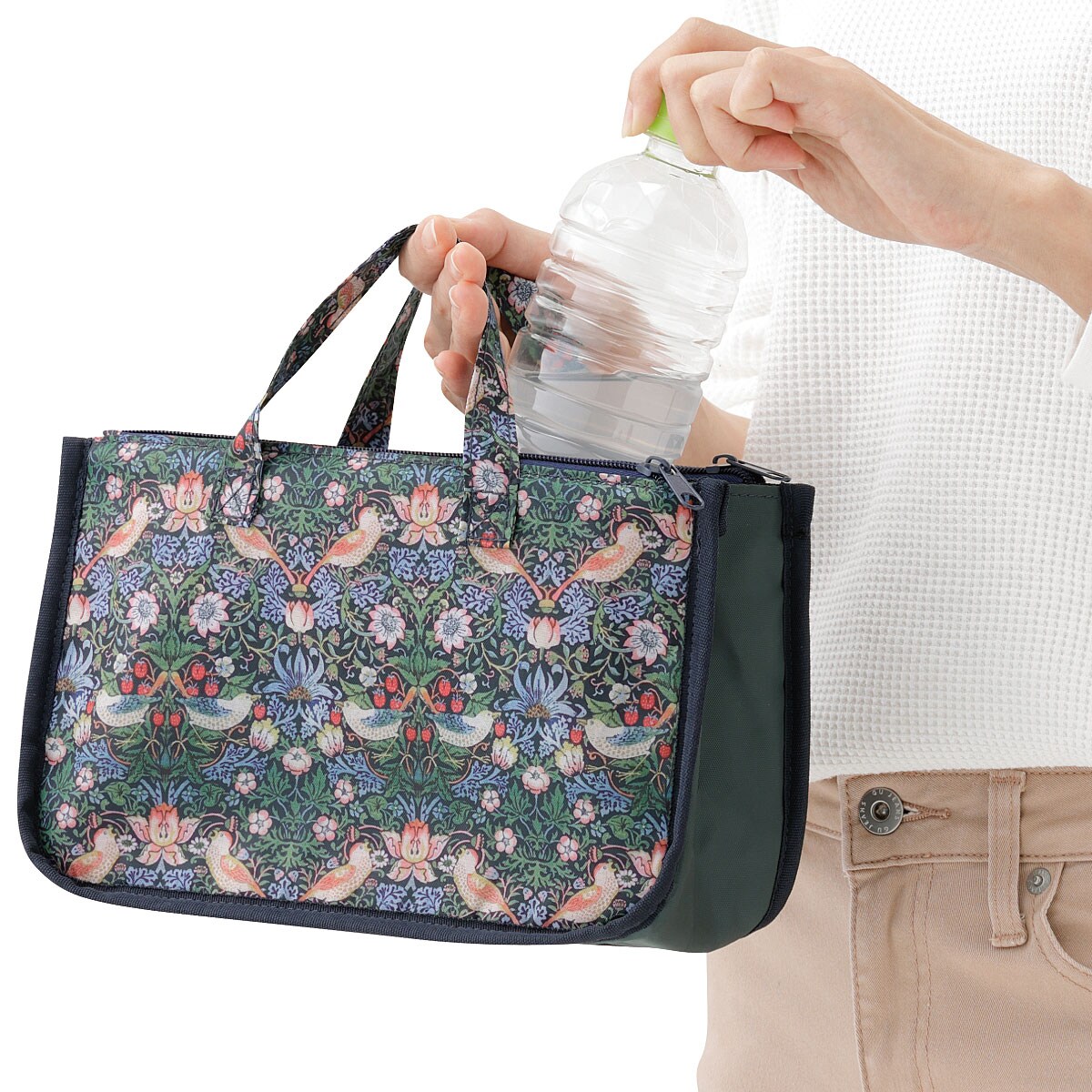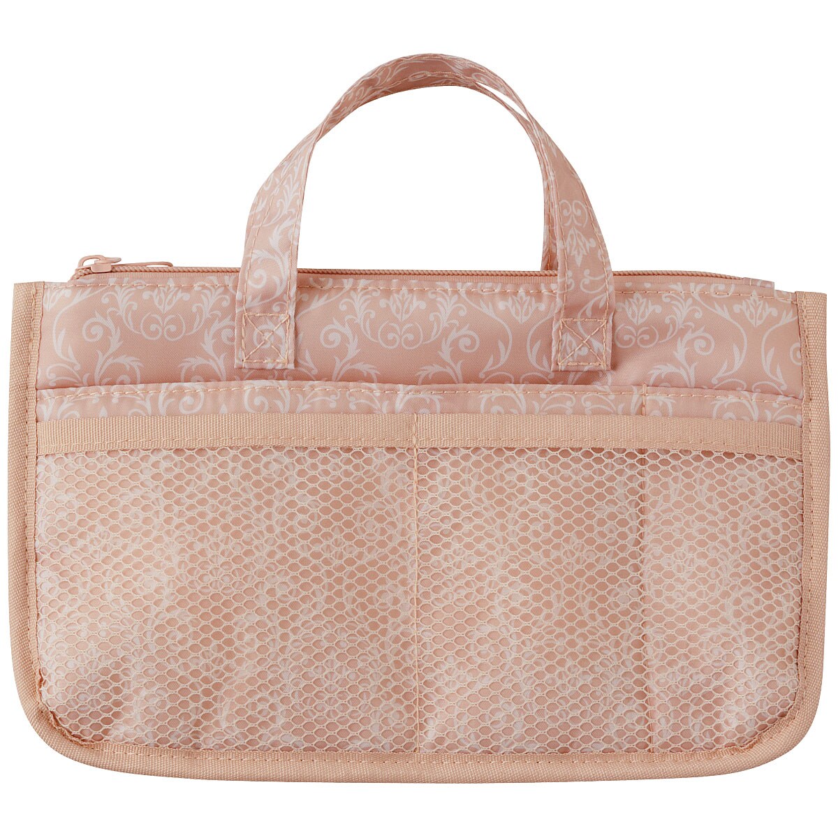 ■材質/ポリエステル ■サイズ(約cm)/[本体]縦16.5×横26.5×マチ8.5 [持ち手高さ]8 ■仕様/メイン収納×1、メッシュポケット×2、オープンポケット×1、ペンポケット×1、ファスナーポケット×2 ■重量/約80g ▼商品によって柄の出方が異なります。●中国製
