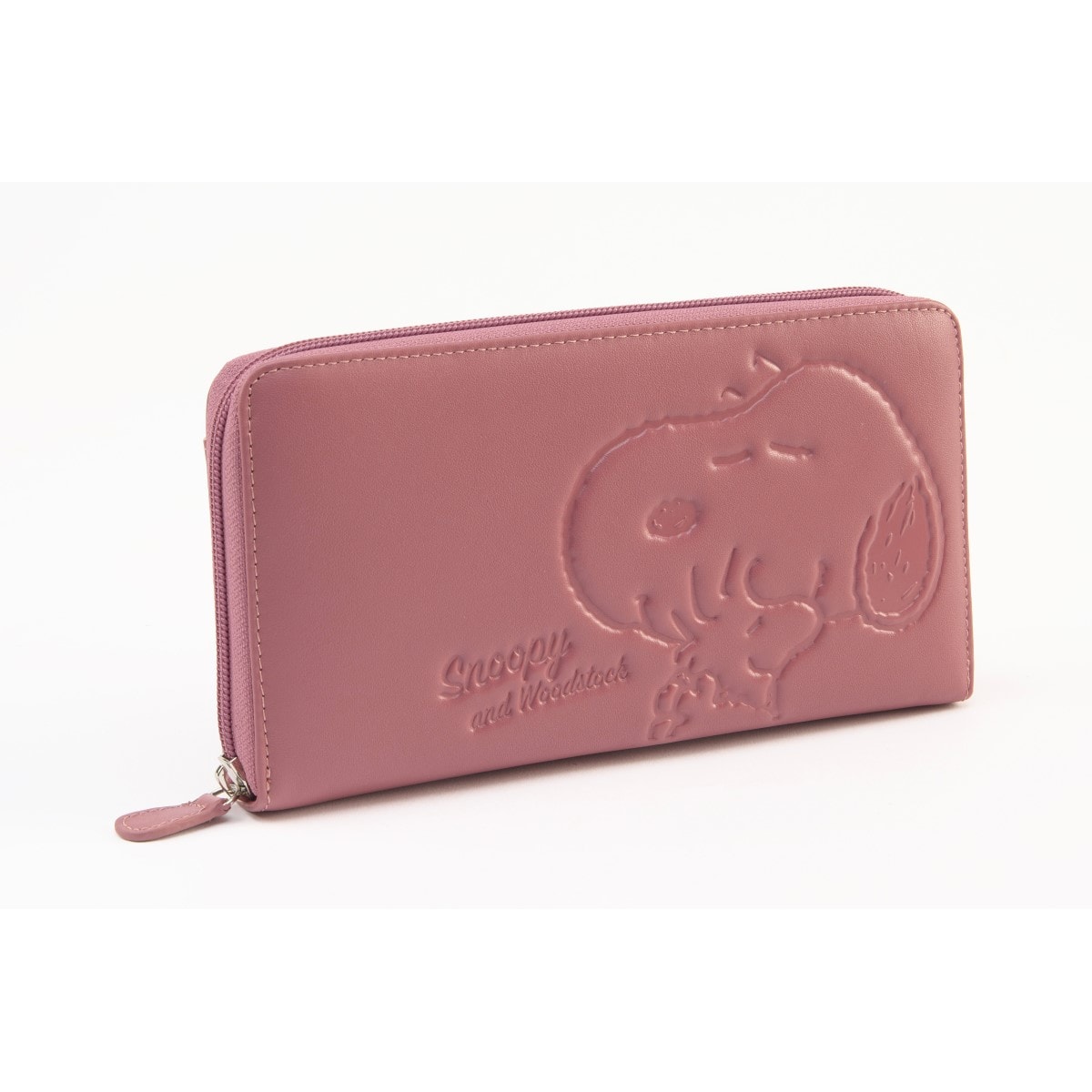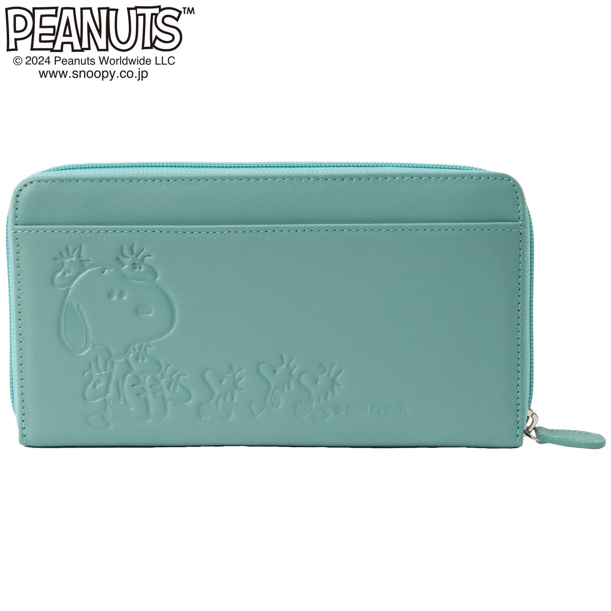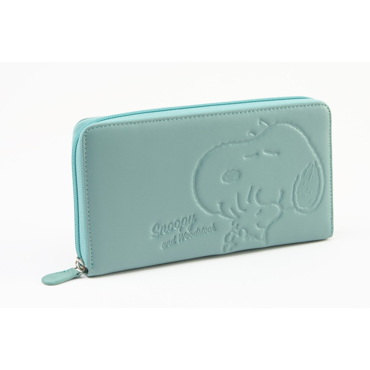 スマホが迷子にならない!ガバッと開く大容量長財布。高級感のある牛革に、スヌーピーを型押し。スマホも入るから、これ1つでお出かけOK!ーデザインー人気のハグ柄。裏面にもスヌーピーとウッドストックの型押しが。ー素材特性ー上質感のある牛革を使用。