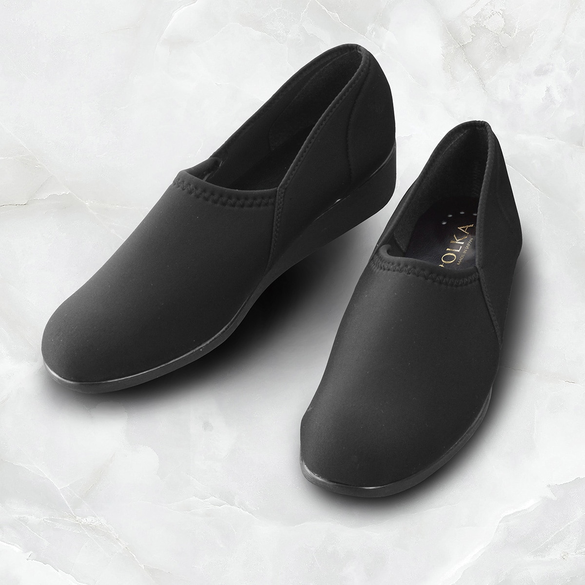 フォーマル時は布製パンプス。喪の場面では殺生を避ける意味でも革製はふさわしくないとされています。撥水加工を施した幅広4E軽量パンプス!ー素材特性ーストレッチ素材で長時間履いてもラク!かかとには着地時の衝撃を吸収するクッションを使用。ーこだわりPOINTー足の形に合わせて伸び、外反母趾の方にも安心なパンプスです。かかと部分も柔らかく、優しく足を包みこみます。底材には、クッション性・軽量性・屈曲性に優れた素材を使用しています。