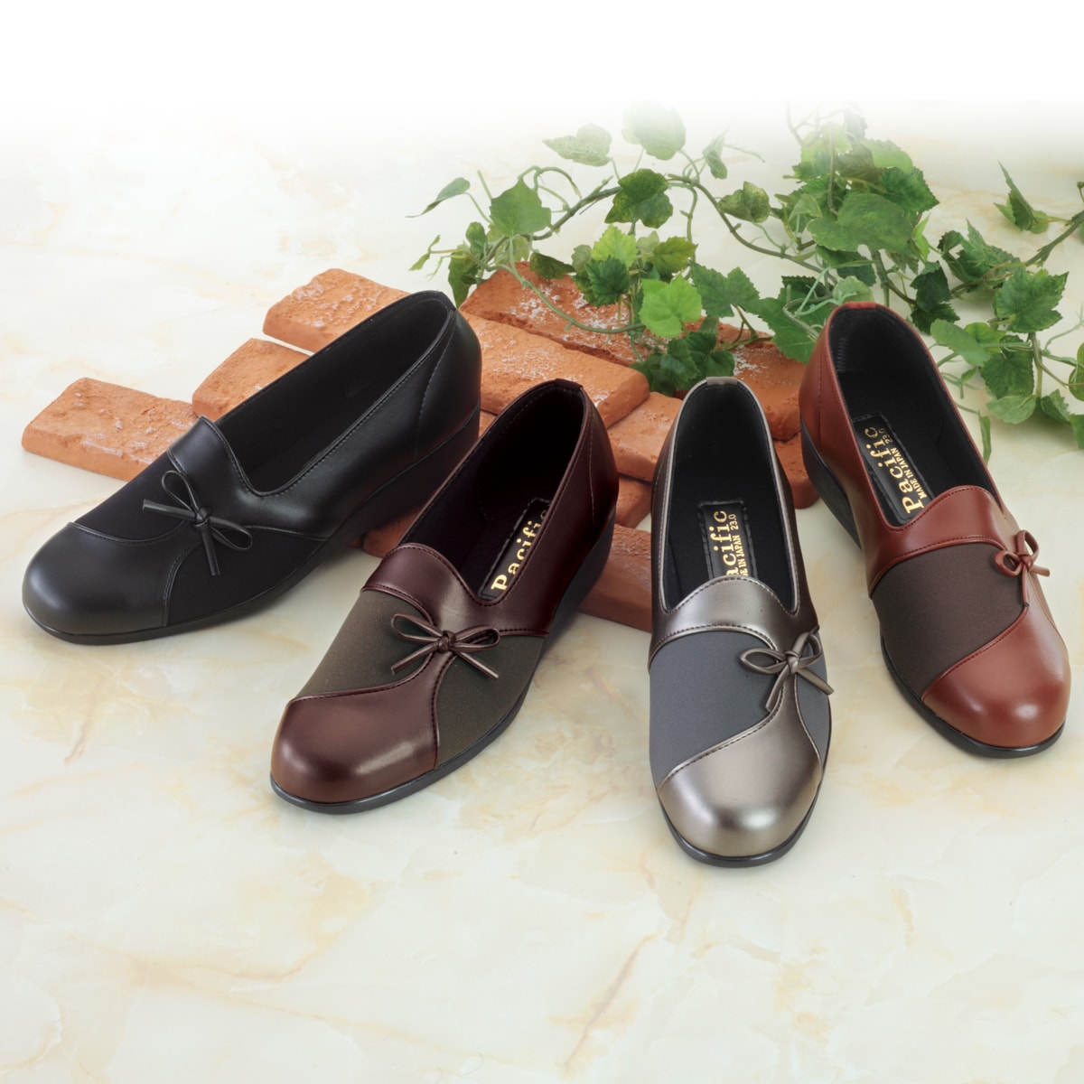 ゆったりした履き心地&エレガントなデザインパンプル(日本製)