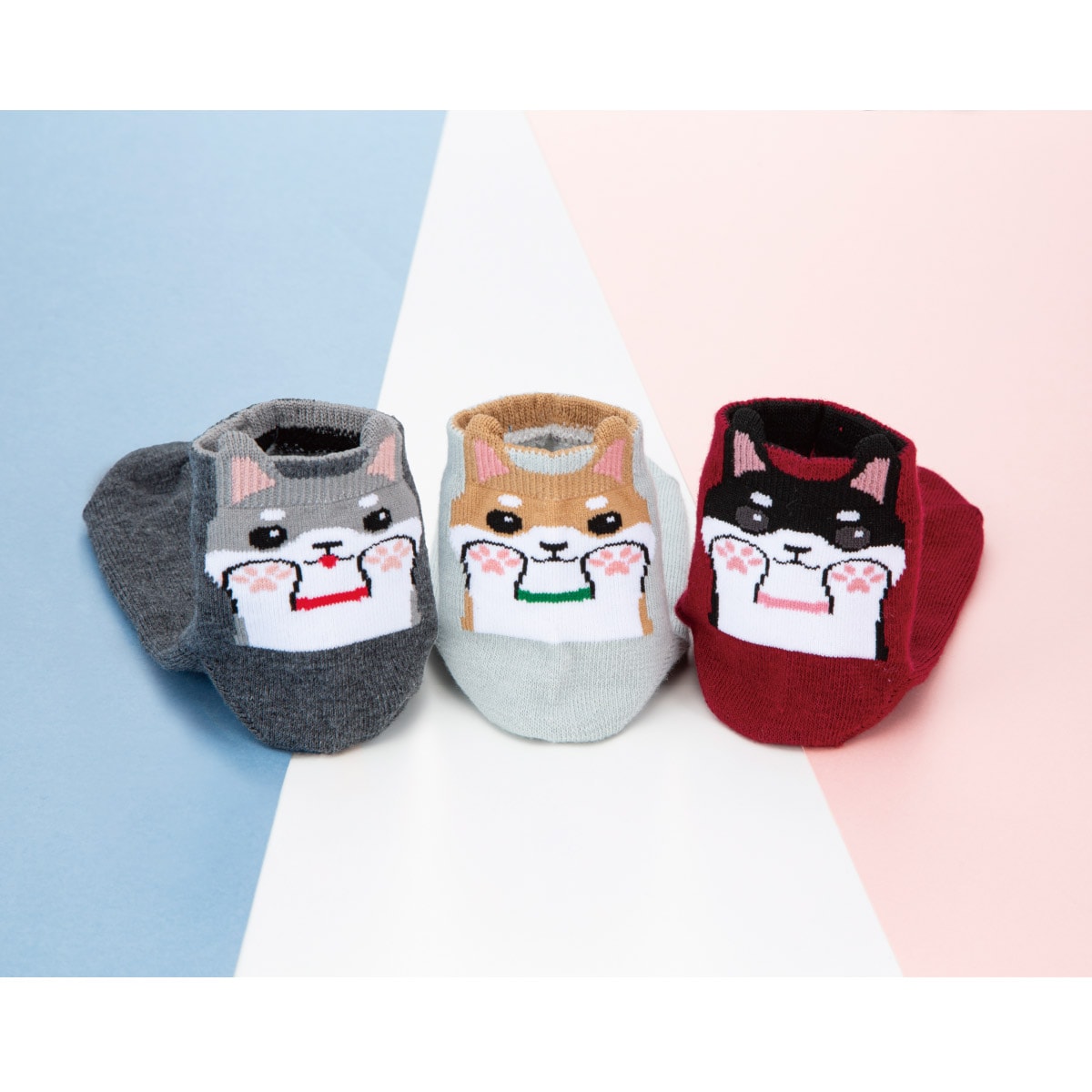 【シリーズ累計販売実績10万足突破!(2024年1月~2025年1月)】 ※メーカー調べ靴を履くと、愛くるしいワンコがひょっこり顔を出しているように見える可愛い靴下6足組!・グレー×2足・茶×2足・クロ×2足