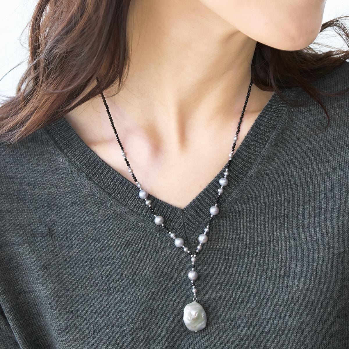 人気のYタイプのネックレスをパールとスピネルで仕上げました。下がり部分のパールはボリューム感たっぷりで、アクセントにピッタリです。-POINT-留め具部分はマグネットで簡単に着脱できます。【Grand Sifore】1971年、宝飾メーカーとして誕生。素材を厳選し原産国から直接原材料を仕入れ、デザイン、製造を自社工場で一貫して行い、素材を生かした商品作りに特化したブランドです。