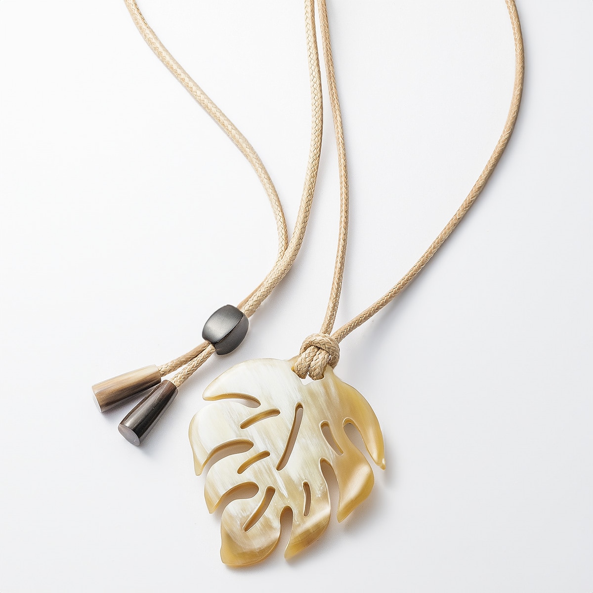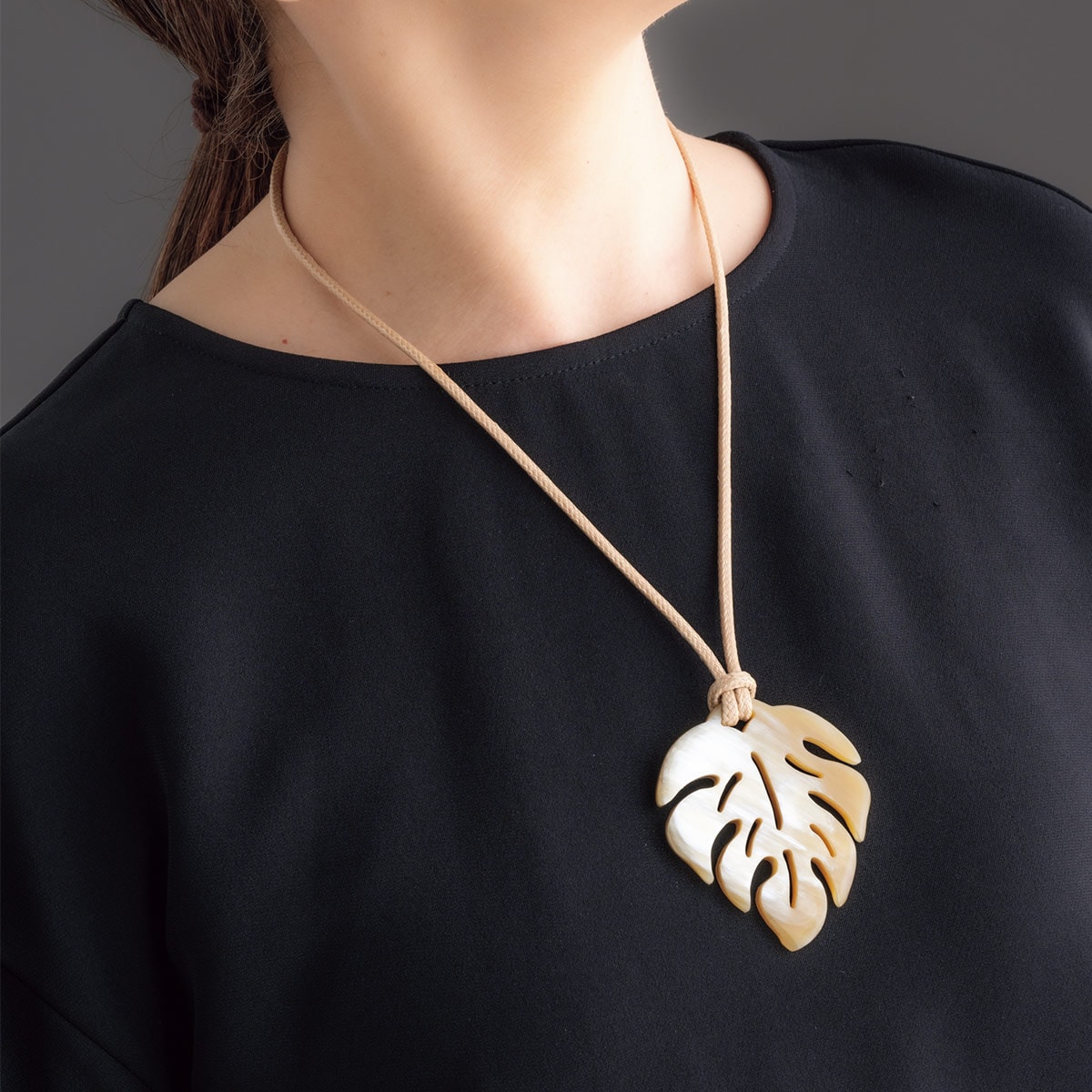■材質/ホーン、合成皮革、真ちゅう(ロジウムメッキ)■[ネックレス]スライド式[ブローチ]回転式■サイズ(約cm)/最大80 [モチーフ]縦6.5×横5.5■重量(約g)/21●日本製※自然素材を使用している為、1点ごとの色合いや形状、模様等が異なる場合がございます。