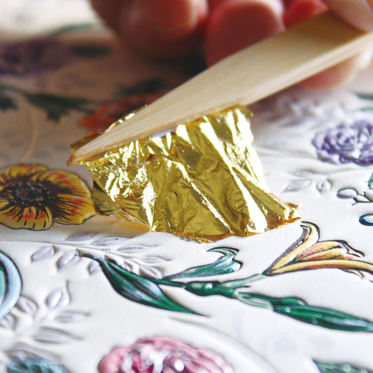 金箔貼り作業 蝶の部分は職人が一つ一つ本金箔を手作業で貼り付けるこだわり。