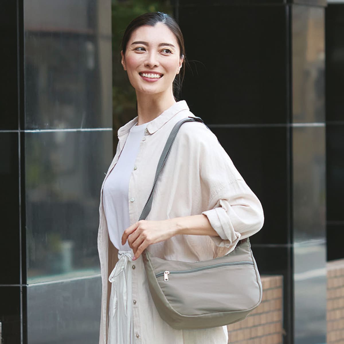 軽量約200gでコンパクトな見た目ながら、500mLのペットボトルもすっぽり!ななめがけも肩がけもでき、毎日のお出かけやウォーキングにもおすすめです。ーこだわりPOINTー・多ポケットで整理しやすく大きく開いてサッと取り出せる。・幅広ベルトだから、体にフィットしてラク!・外側両面にファスナーポケットがあるから、パスケースやスマホなどすぐ取り出せます。・マチ幅約12cmと自立型。ー素材特性ー・はっ水【軽量約200g】