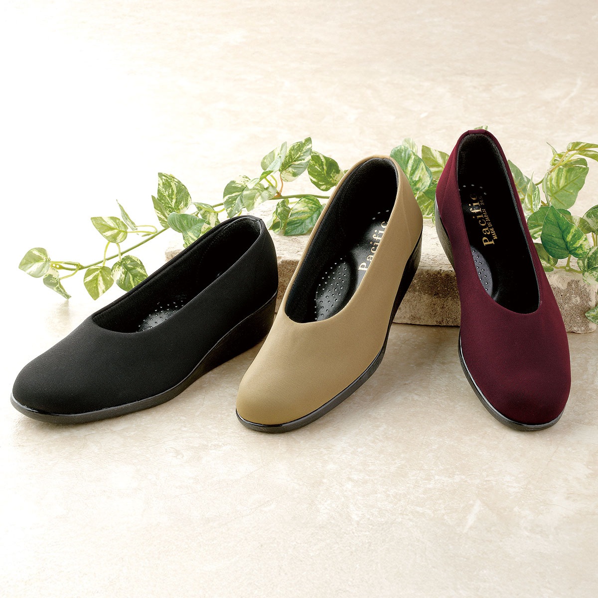 軽量・ソフトな布製パンプス (左から)ブラック、ベージュ、ワイン