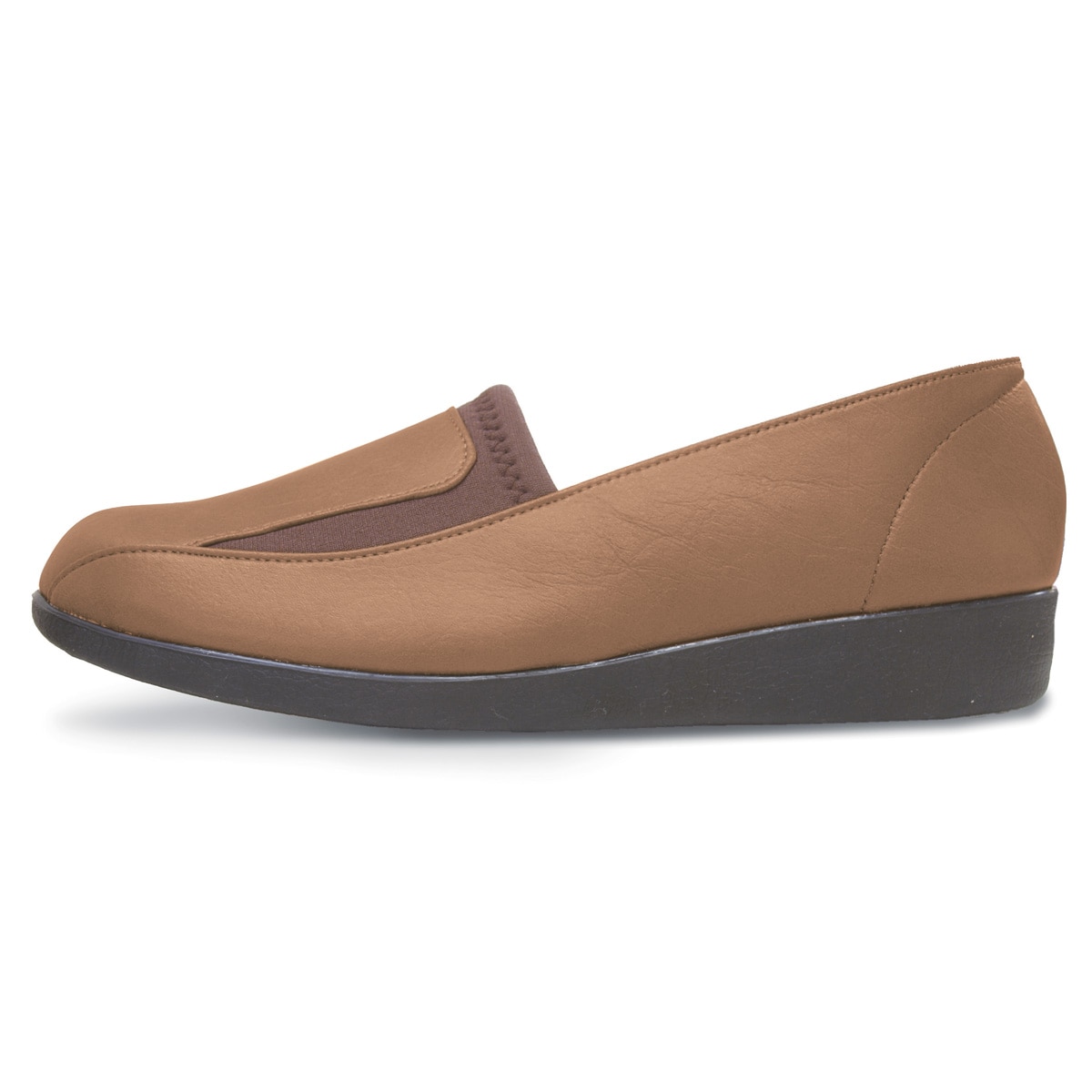 お洒落で足にやさしい国産タウンシューズ。シンプル&すっきりデザインで様々なシーンで大活躍!ーこだわりPOINTー履き口はストレッチ素材だから、脱ぎ履きがラク!甲材にはやわらかく型崩れしにくい素材を使用。ー素材特性ー安定感のあるウェッジソールを使用。着地・蹴り出しがスムーズで、つまずきにくく、歩きやすい!【軽量約160g(23cm片足)】