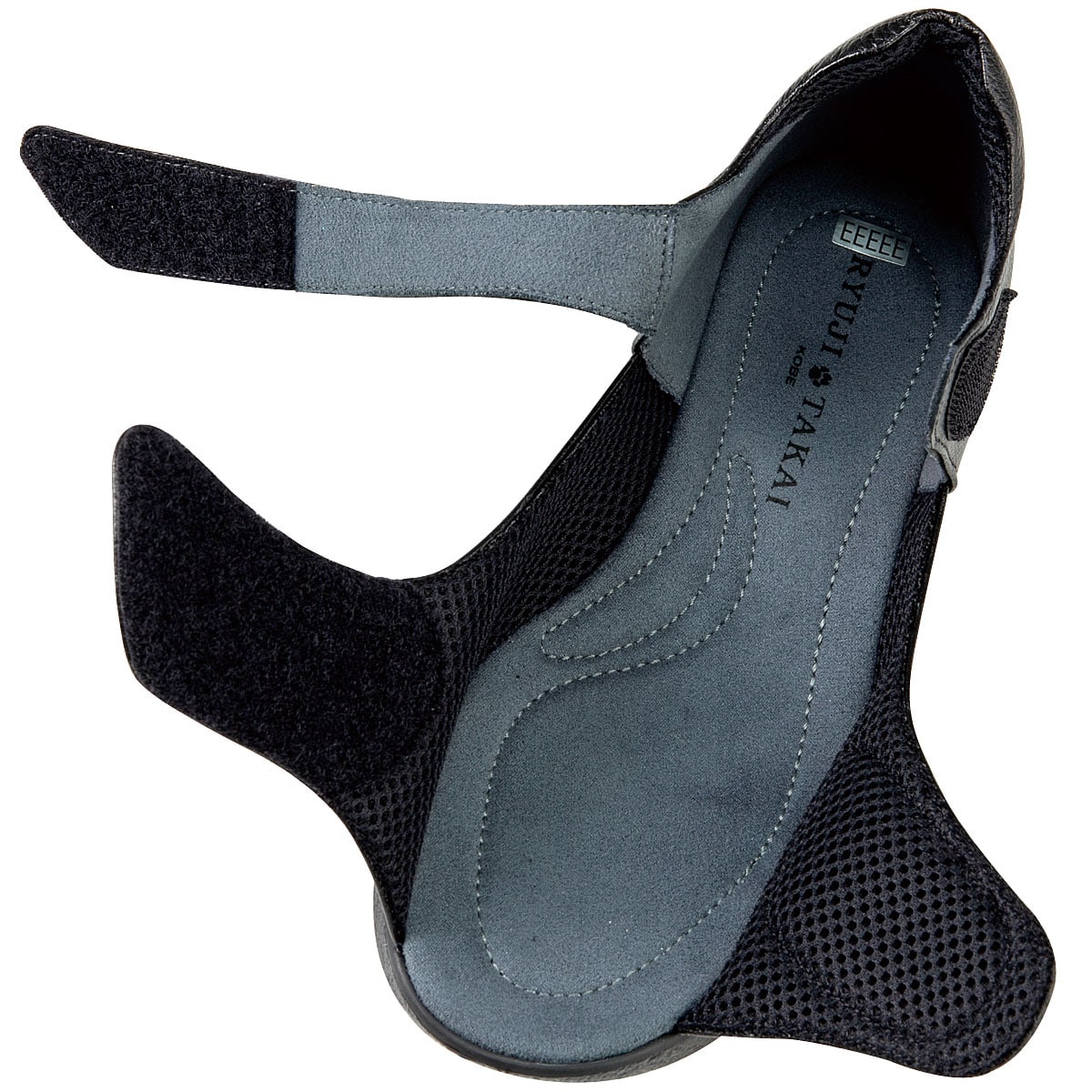 2箇所の面ファスナー仕様のベルトで脱ぎはきラクラク&甲部分と足首部分もジャストフィット!