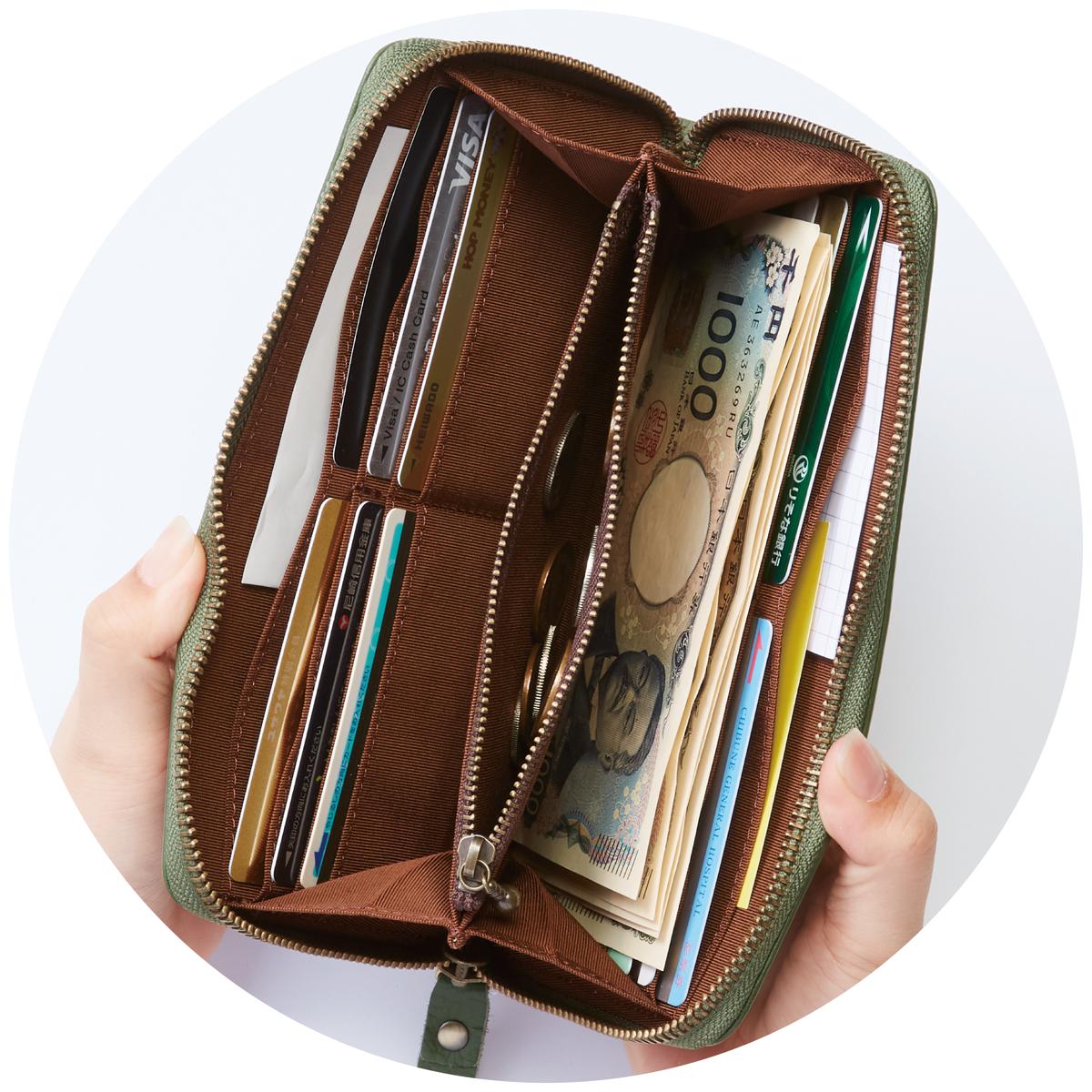 オリーブガバッ!大きく開閉でき、中身が見やすいラウンドファスナー