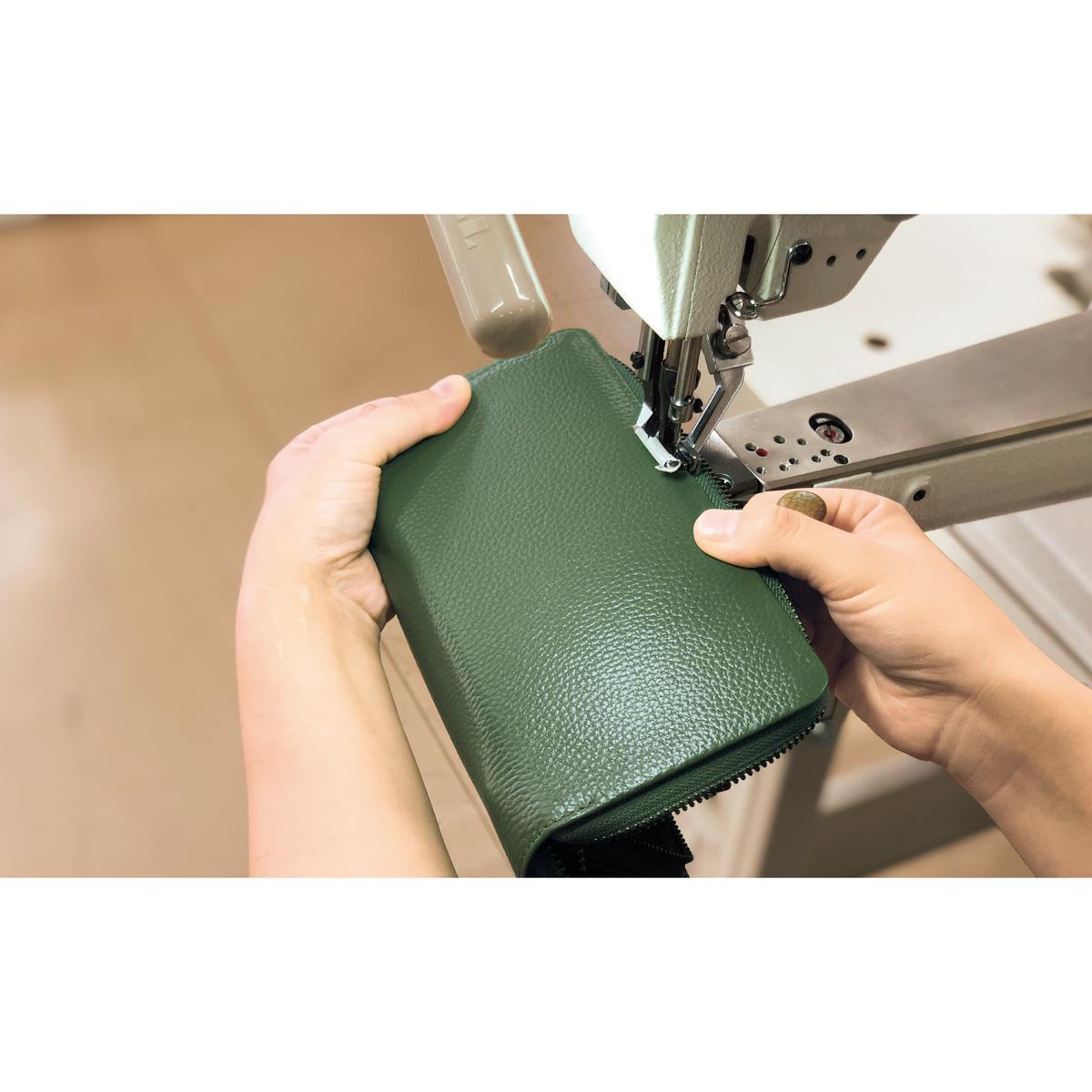 丁寧に作られた豊岡工房の革小物 日本有数の鞄産地・豊岡で一世紀以上も鞄を作り続けてきた小田清株式会社の伝統と技を受け継ぐ「豊岡工房」。確かな目利きで素材を吟味し、工業用ミシンでひとつひとつ丁寧に縫い上げています。