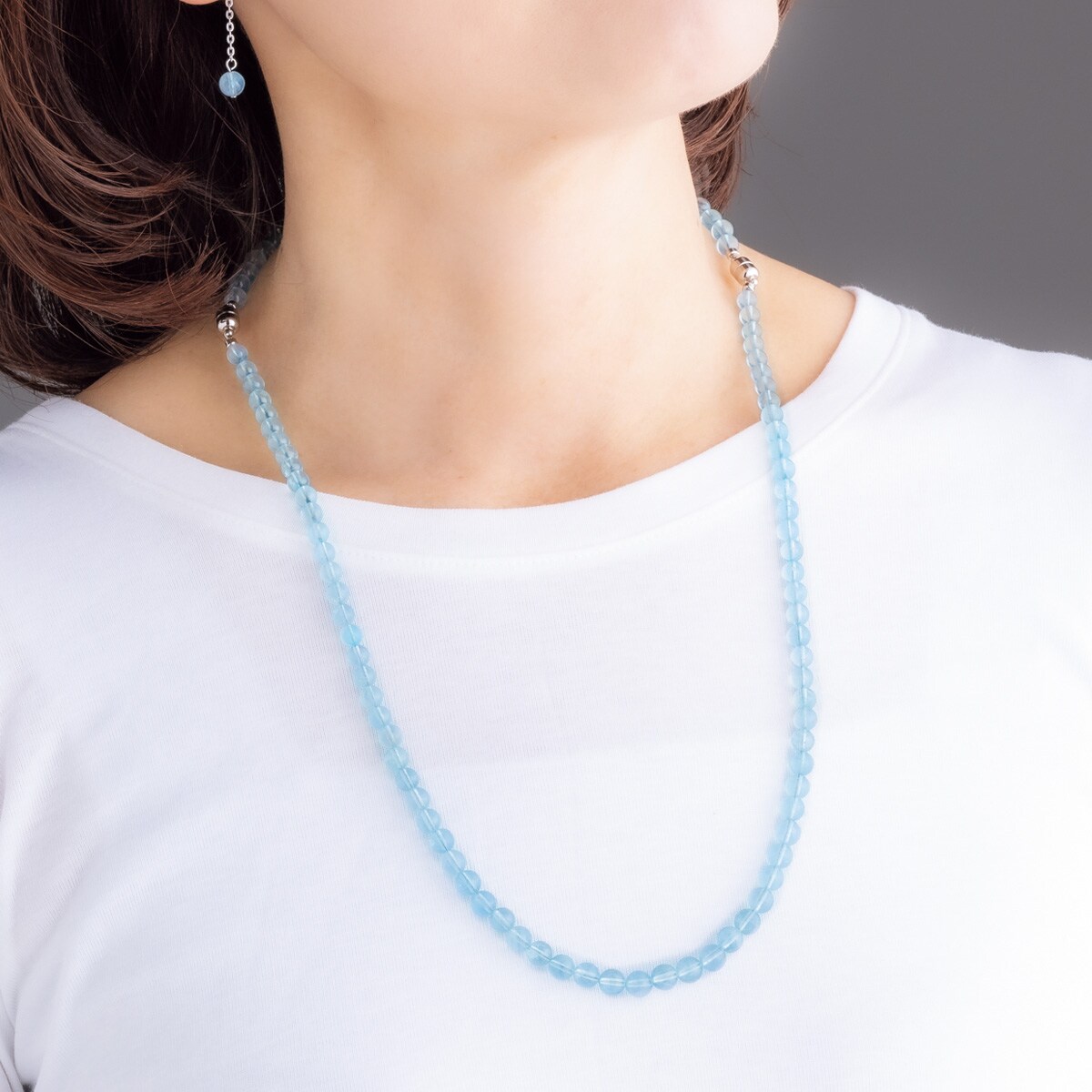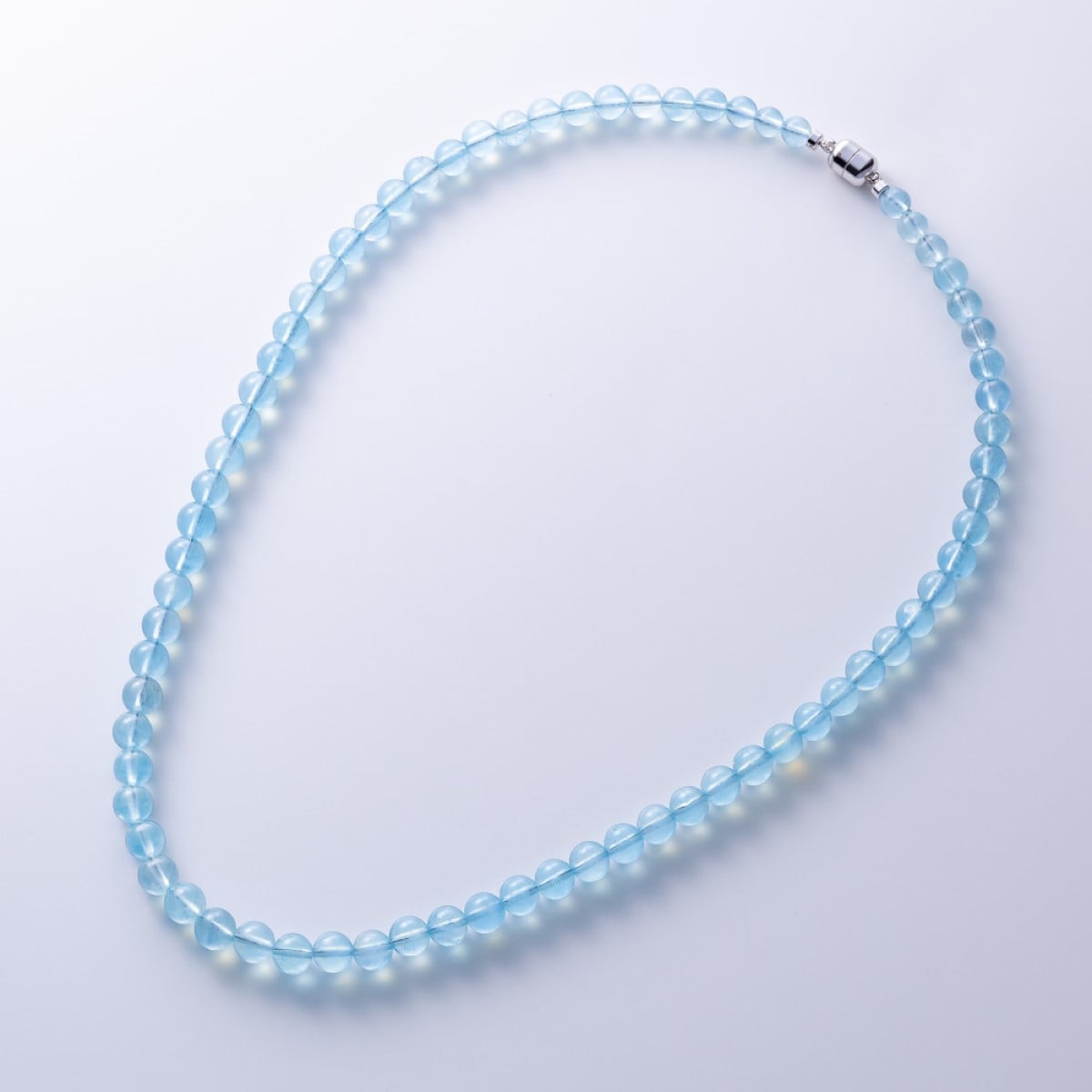 非常に稀少で、高価な宝石として知られるアクアマリン。今回は良質な原石を特別に確保できたことで、上質な輝きを手に取りやすい価格でご用意いたしました。暑い季節は爽やかに彩りたい。透明感があり涼やかなアクアマリンを。ーPOINTーネックレスの留め具部分はマグネットで簡単に着脱できます。