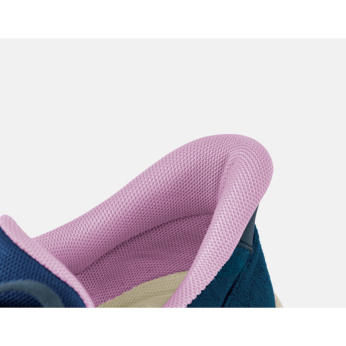 ネイビー靴ベラ形状&かかと部の裏材の滑りやすい素材で立ったまま履ける!
