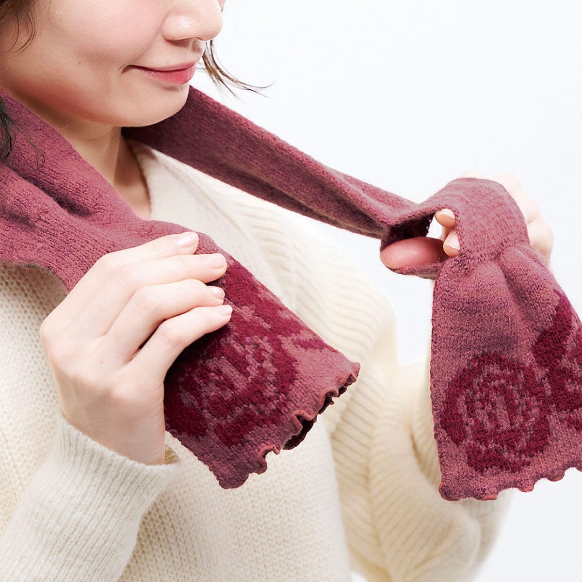つけても外しても邪魔にならないミニマフラー。タテに半分に折り、片側のループに通すだけでOK!ーこだわりPOINTーミニサイズマフラーだから、着けても外してもかさばりにくく、バッグに入れて携帯できます。ー素材特性ー東レの吸湿発熱糸「ソフトサーモ®」使用。水分を吸収して発熱。優れた保温性であたたかさを保ち、湿気もコントロール。ムレにくくいつもサラサラで肌ざわりもソフトな機能素材です。