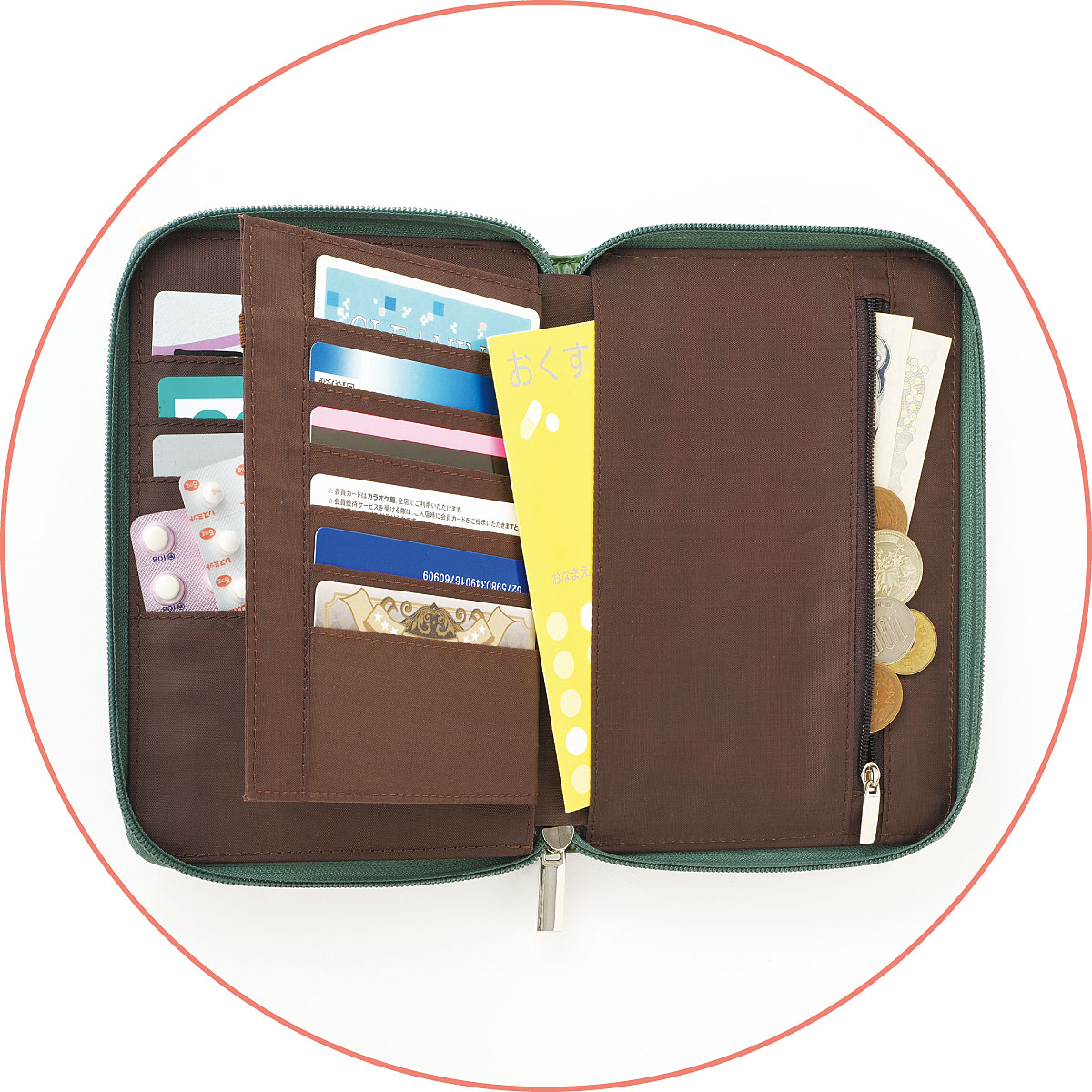 カードがたっぷり入り、内側のポケットにはお薬などを※イメージ